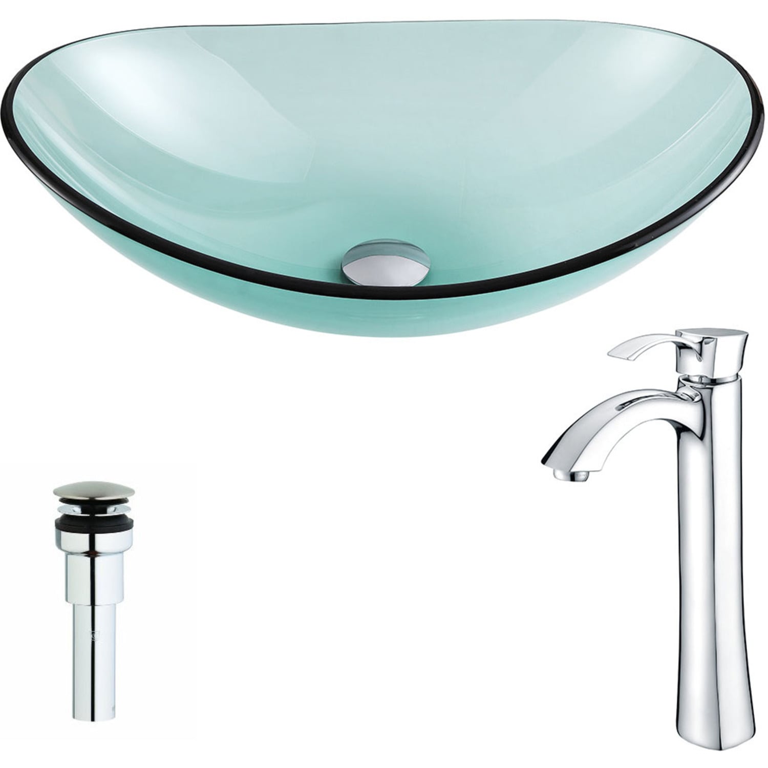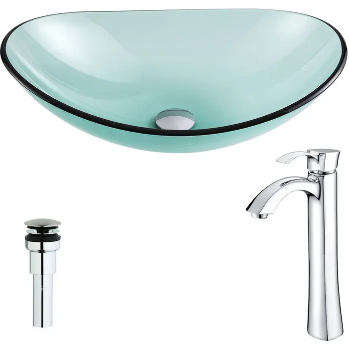 Anzzi Major Series Deco-Glass Vessel Sink in Lustrous Green with Harmony Faucet in Chrome, 848308085301, LSAZ076-095