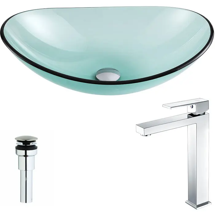 Anzzi Major Series Deco-Glass Vessel Sink in Lustrous Green with Enti Faucet in Chrome, 848308085790, LSAZ076-096