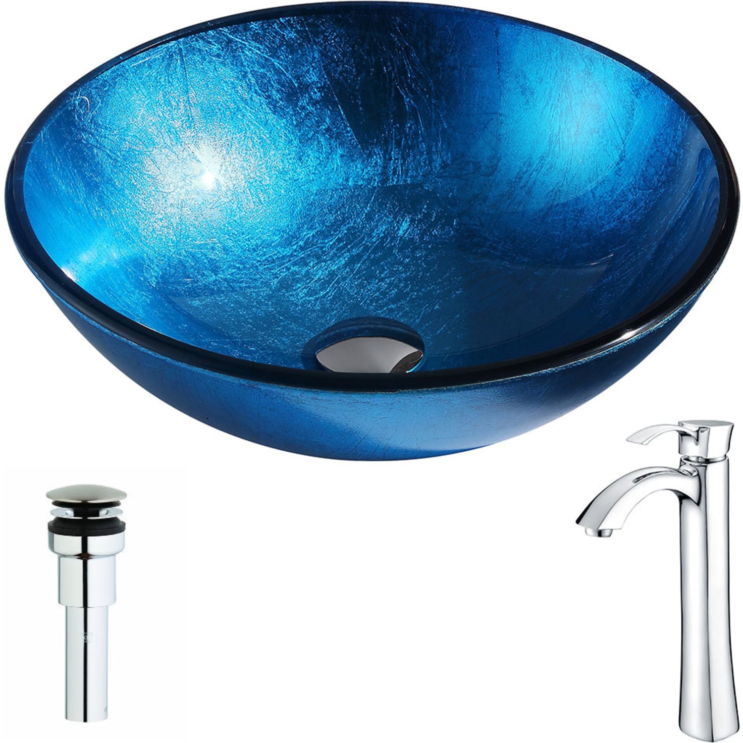 Anzzi Arc Series Deco-Glass Vessel Sink in Lustrous Light Blue with Harmony Faucet in Polished Chrome, 848308083710, LSAZ078-095