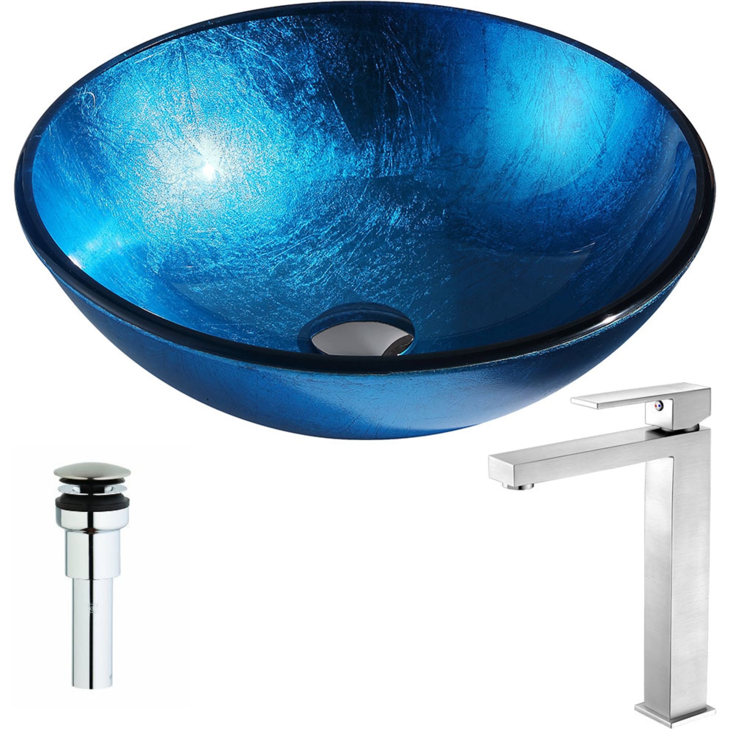 Anzzi Arc Series Deco-Glass Vessel Sink in Lustrous Light Blue with Enti Faucet in Brushed Nickel, 848308084373, LSAZ078-096B