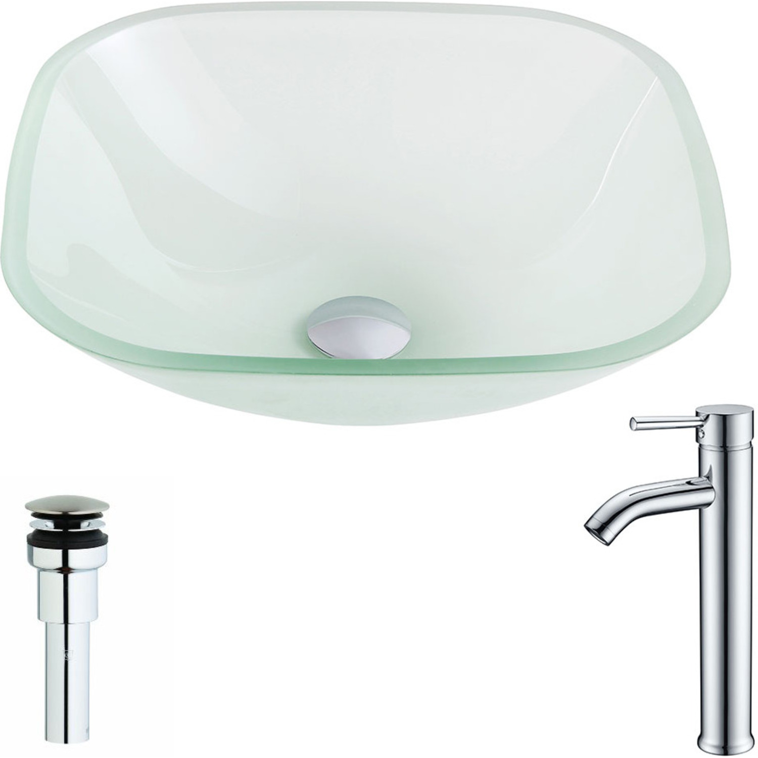 Anzzi Vista Series Deco-Glass Vessel Sink in Lustrous Frosted with Fann Faucet in Chrome, 848308085080, LSAZ081-041