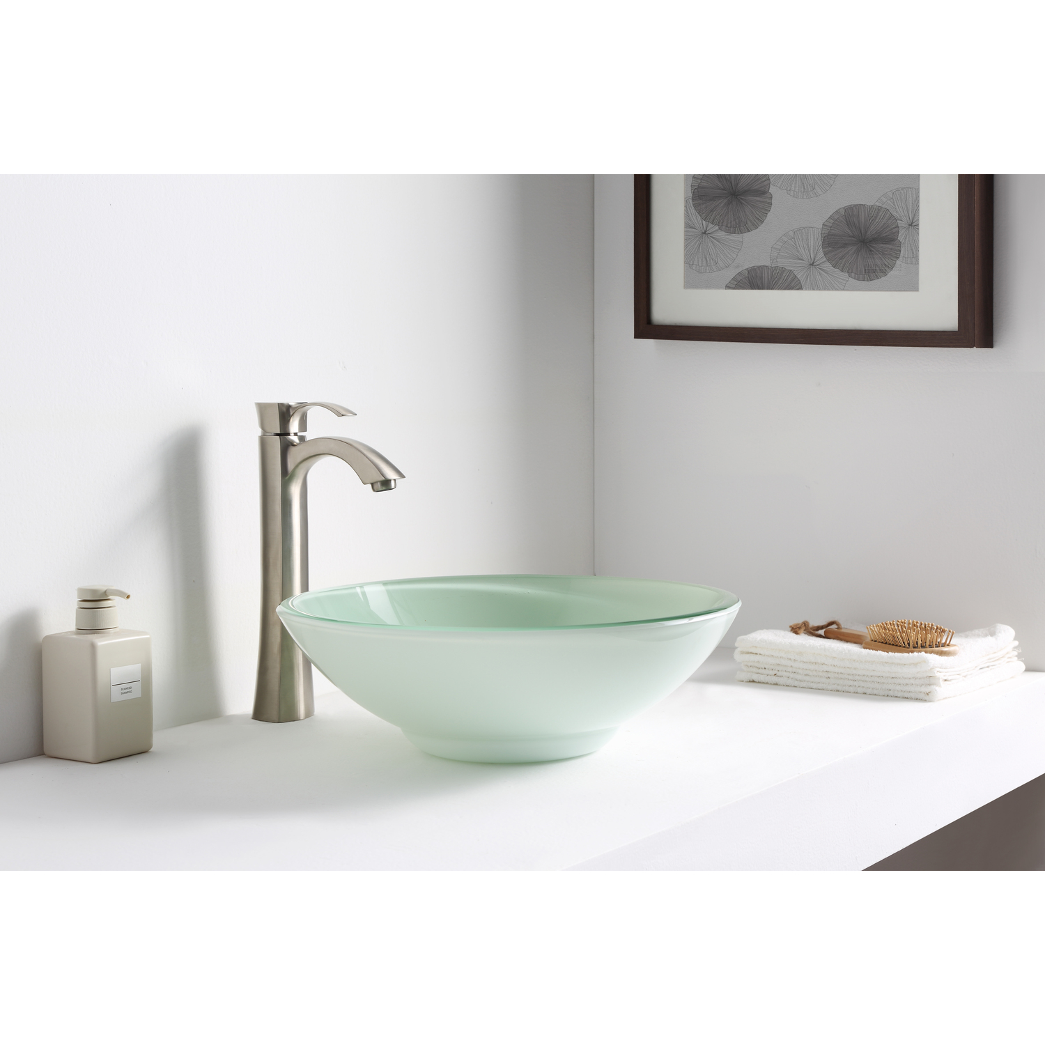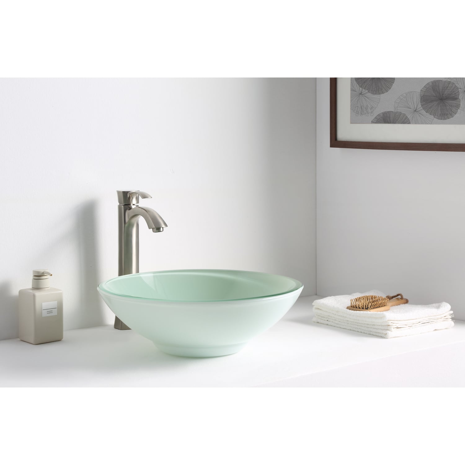 The ANZZI Sonata Series sink is a traditionally crafted round vessel sink adorned in a Lustrous Light Green Finish. Each ANZZI vessel sink is formed using RHINO ALLOY certified high tempered Deco-Glass material. The result is a perfectly shaped dynamically captivating vessel centerpiece for any bathroom counter.Lustrous Light Green FinishRHINO ALLOY certified Tempered Deco-Glass constructionScratch-tough and stain-resistant non-porous surfaceEasy-to-clean low maintenanceTop Mount installationDimensions: 15.9 in. L x 15.9 in. W x 5.1 in. HDeco-Glass thickness 1.75 in.Single 3/4 in. standard drain openingLimited Lifetime WarrantyTo speak to a knowledgeable and dedicated ANZZI specialist simply call 1-844-44-ANZZI or visit us on the web at www.ANZZI.comAdditionally, use the following codes to search for exquisite vessel faucet options from ANZZI: L-AZ022 , L-AZ095 , L-AZ095BN , L-AZ096 , L-AZ096BN , L-AZ097 , L-AZ097BN , L-AZ040 , L-AZ041