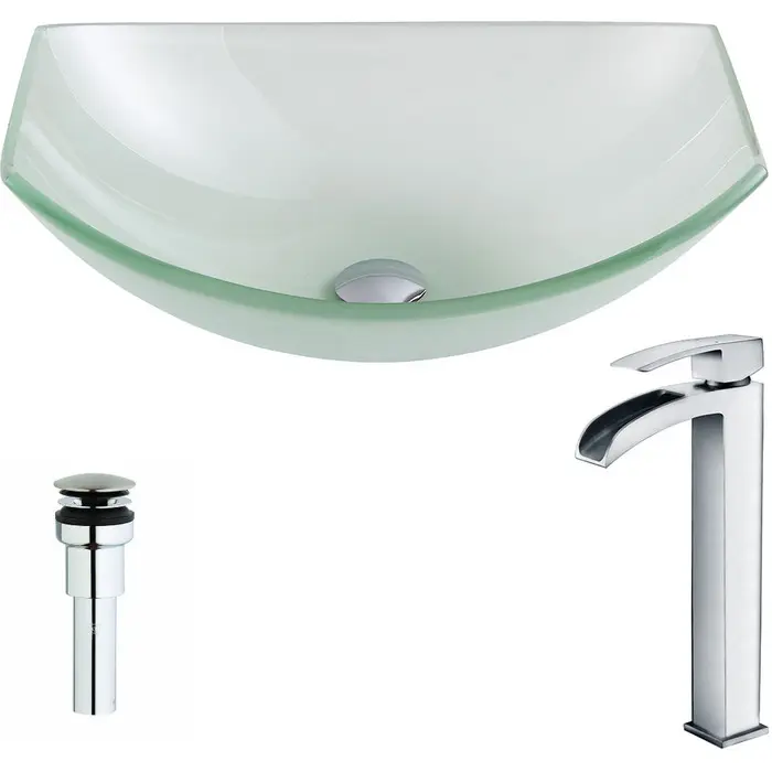 Anzzi Pendant Series Deco-Glass Vessel Sink in Lustrous Frosted with Key Faucet in Polished Chrome, 848308086292, LSAZ085-097