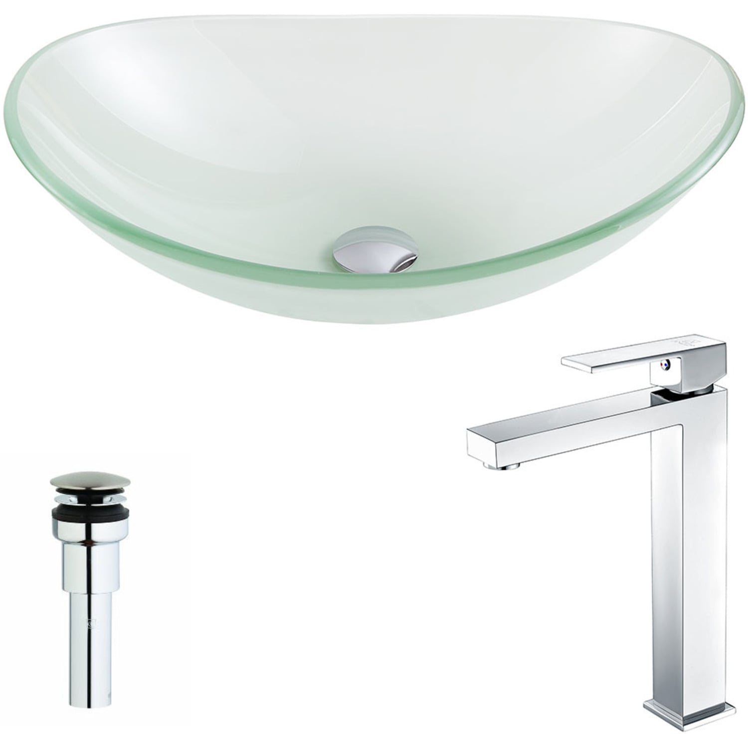Anzzi Forza Series Deco-Glass Vessel Sink in Lustrous Frosted with Enti Faucet in Chrome, 848308085684, LSAZ086-096