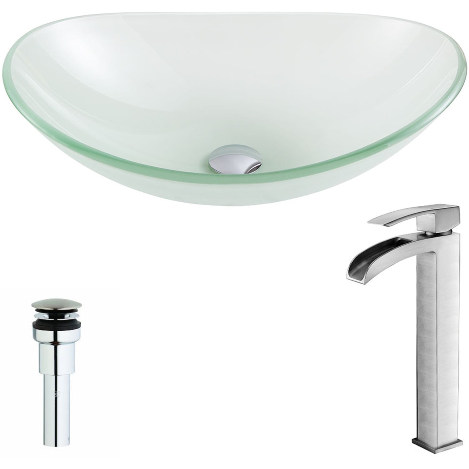 Anzzi Forza Series Deco-Glass Vessel Sink in Lustrous Frosted with Key Faucet in Brushed Nickel, 848308084588, LSAZ086-097B