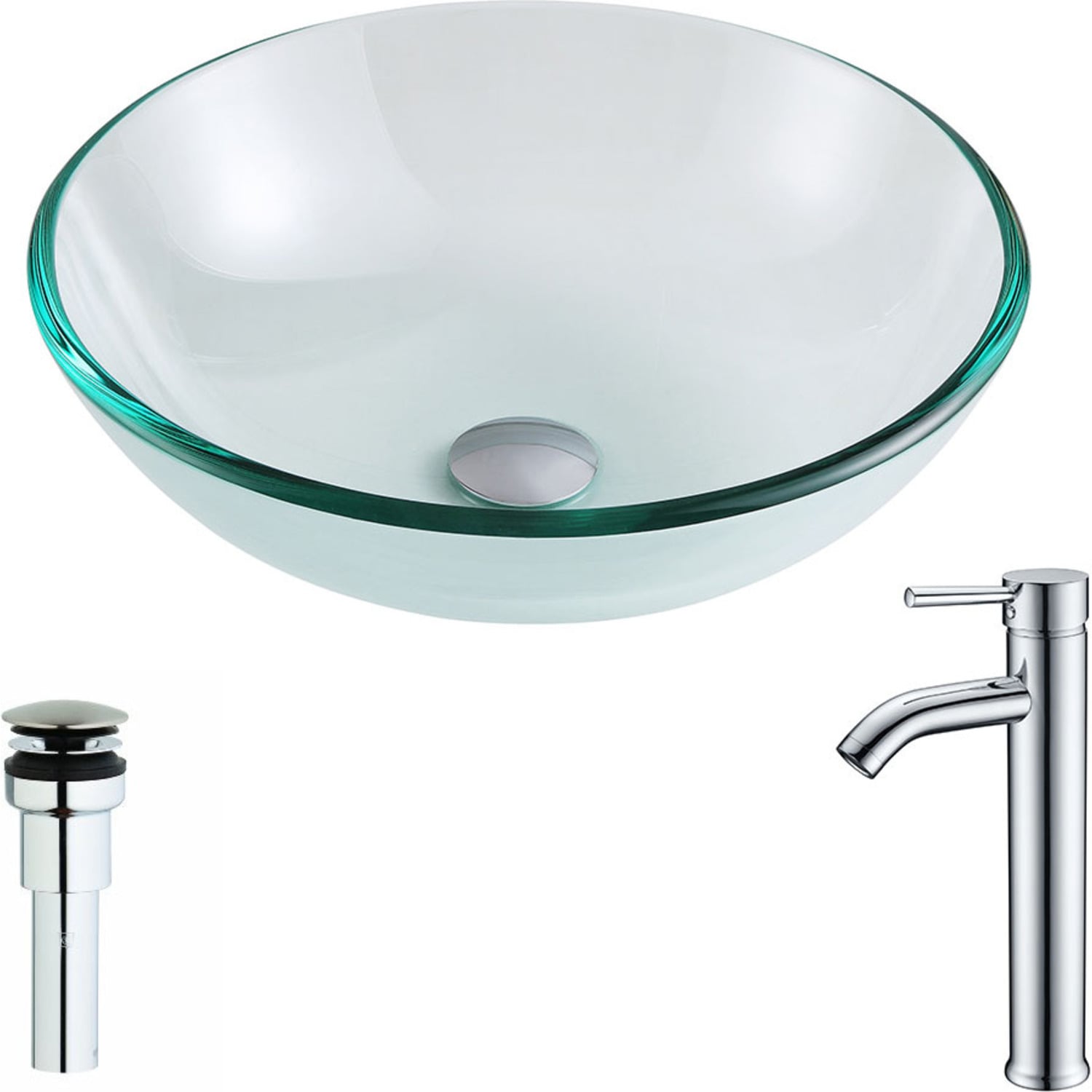 Anzzi Etude Series Deco-Glass Vessel Sink in Lustrous Clear with Fann Faucet in Chrome, 848308086476, LSAZ087-041