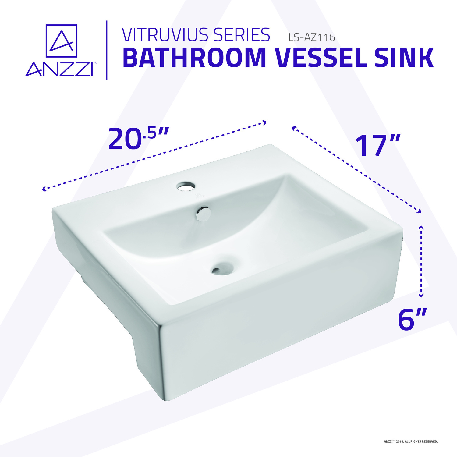 Introduce an exquisite piece of modern contemporary artistry to your wash room with the ANZZI Vitruvius Series Vessel Vitreous China bathroom sink. The ANZZI Vitruvius is crafted using the finest quality Vitreous China resulting in a smoothly polished basin with the delicate features of fine china and the stubborn durability of high end ceramics. ANZZI continues to deliver the latest trends and modern styles to your home to help you build your ideal living space.RHINO ALLOY approved artisan strength Vitreous China materialNon-porous long lasting polished White finishBack side built in overflowcUPC & CSA certifiedDimensions: 20.5 in. x 17 in.Standard 1.75 in. drain openingDrain assembly not includedSingle 35 mm faucet holeVessel or Farmhouse style installationShips from warehouse within 24 hours of order processingLimited Lifetime WarrantyTo speak to a knowledgeable and dedicated ANZZI specialist simply call 1-844-44-ANZZI or visit us on the web at www.ANZZI.com