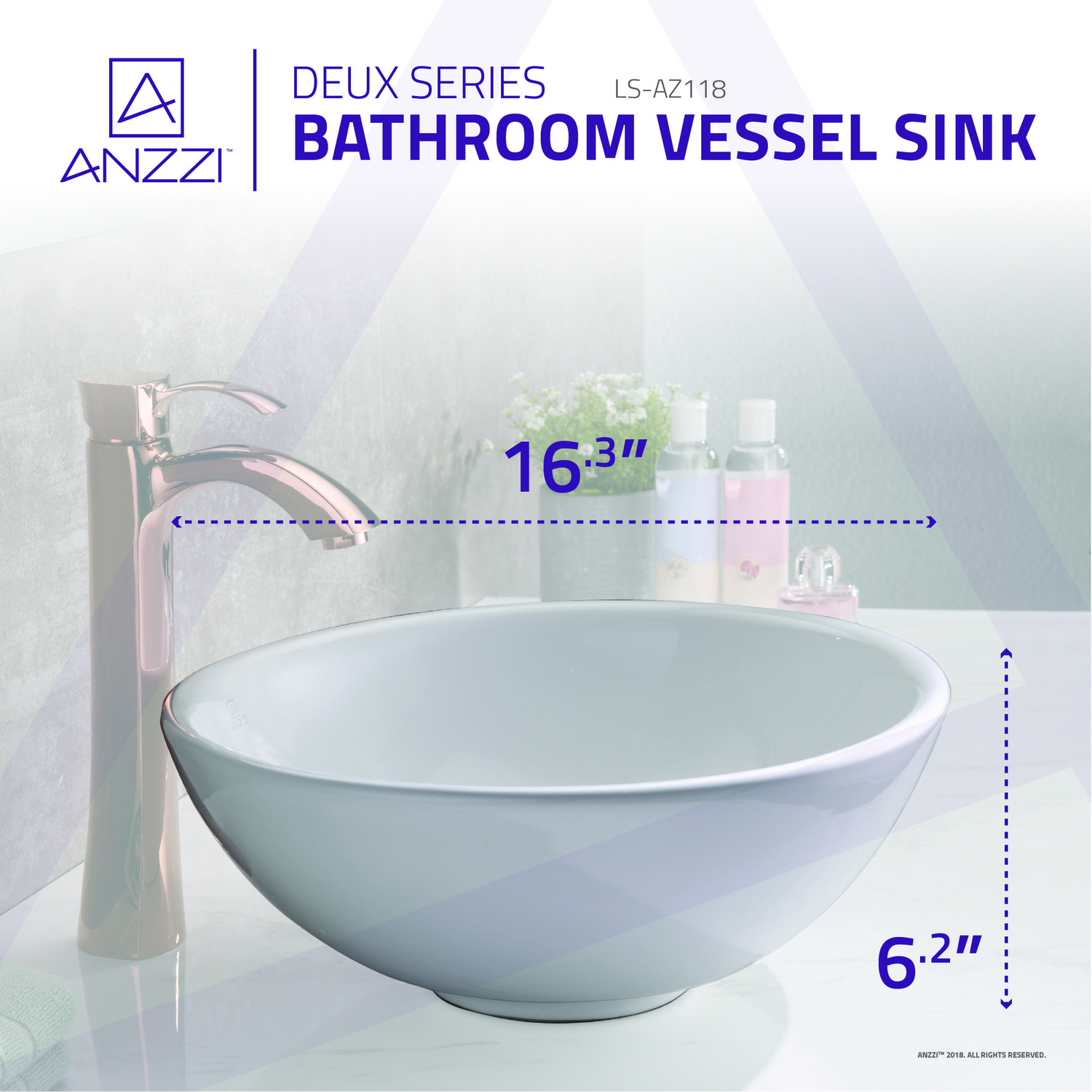 Introduce an exquisite piece of modern contemporary artistry to your wash room with the ANZZI Deux Series Vessel Vitreous China bathroom sink. The ANZZI Deux is crafted using the finest quality Vitreous China resulting in a smoothly polished basin with the delicate features of fine china and the stubborn durability of high end ceramics. ANZZI continues to deliver the latest trends and modern styles to your home to help you build your ideal living space.RHINO ALLOY approved artisan strength Vitreous China materialNon-porous long lasting polished White finishNo overflowcUPC & CSA certifiedDimensions: 16.3 in. x 16.3 in.Standard 1.75 in. drain openingDrain assembly not includedNo faucet holesEasy DIY friendly top mounted installationShips from warehouse within 24 hours of order processingLimited Lifetime WarrantyTo speak to a knowledgeable and dedicated ANZZI specialist simply call 1-844-44-ANZZI or visit us on the web at www.ANZZI.com