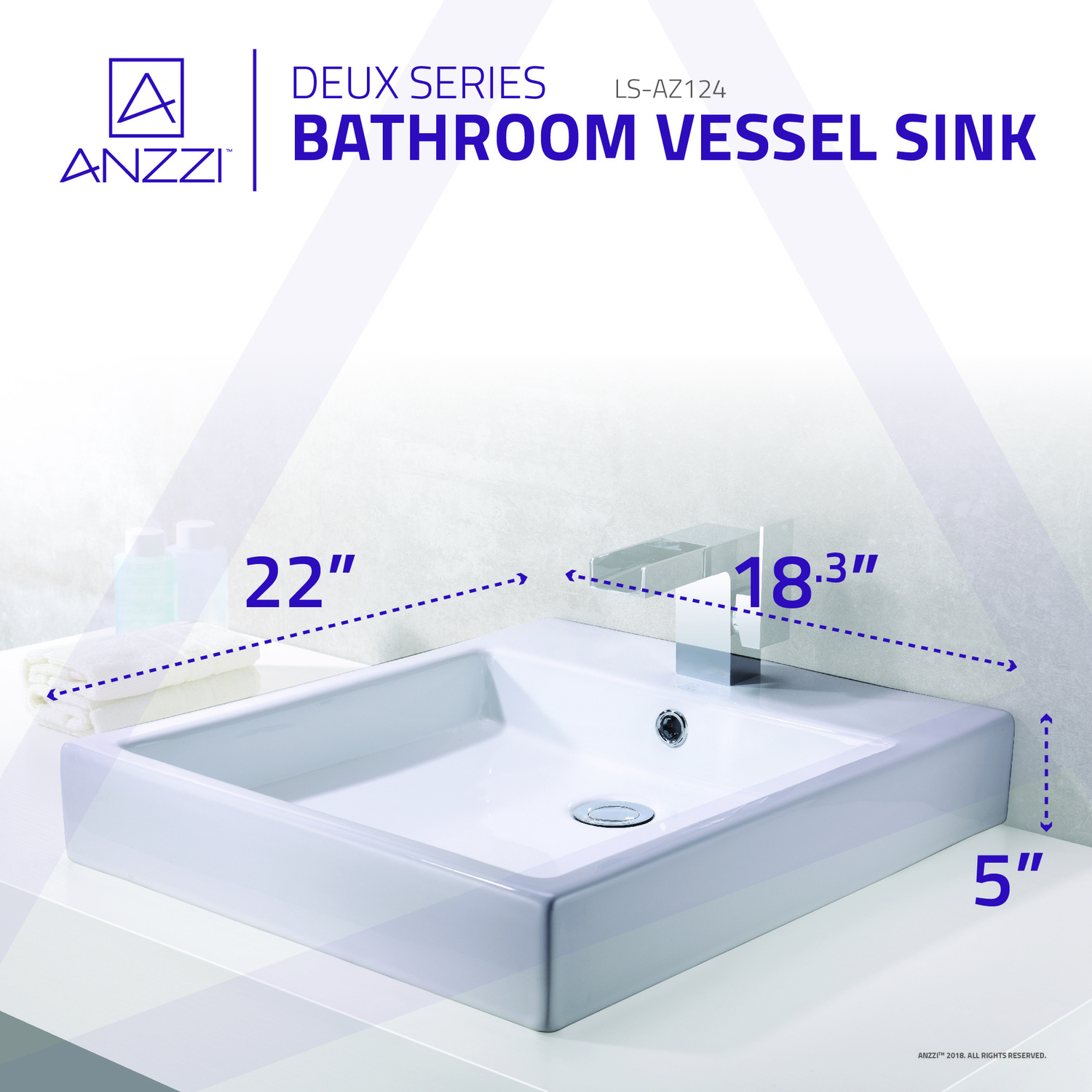 Introduce an exquisite piece of modern contemporary artistry to your wash room with the ANZZI Deux Series Vessel Vitreous China bathroom sink. The ANZZI Deux is crafted using the finest quality Vitreous China resulting in a smoothly polished basin with the delicate features of fine china and the stubborn durability of high end ceramics. ANZZI continues to deliver the latest trends and modern styles to your home to help you build your ideal living space.RHINO ALLOY approved artisan strength Vitreous China materialNon-porous long lasting polished White finishBack side built in overflowcUPC & CSA certifiedDimensions: 18.3 in. x 22 in.Standard 1.75 in. drain openingDrain assembly not includedSingle 35 mm faucet holeEasy DIY friendly top mounted installationShips from warehouse within 24 hours of order processingLimited Lifetime WarrantyTo speak to a knowledgeable and dedicated ANZZI specialist simply call 1-844-44-ANZZI or visit us on the web at www.ANZZI.com