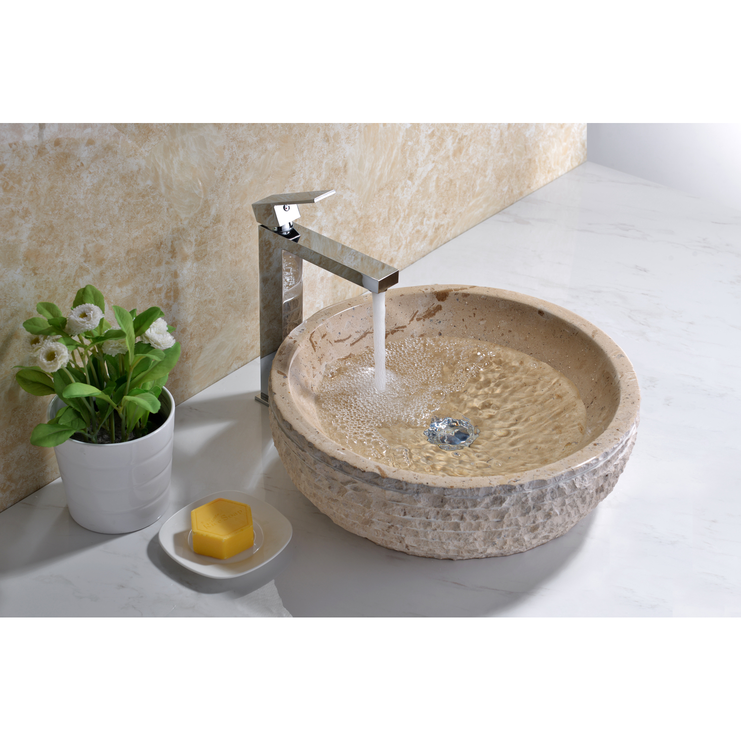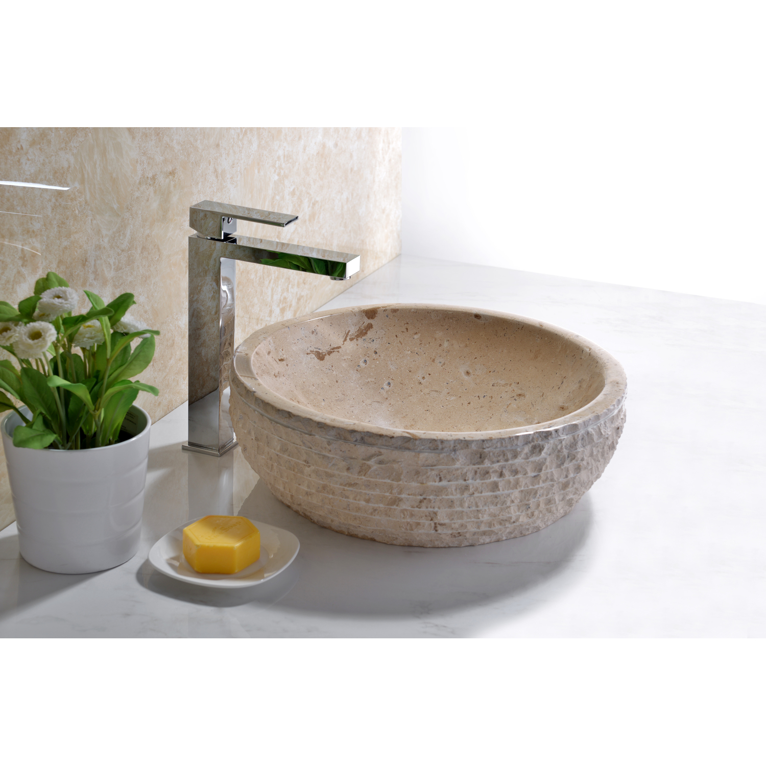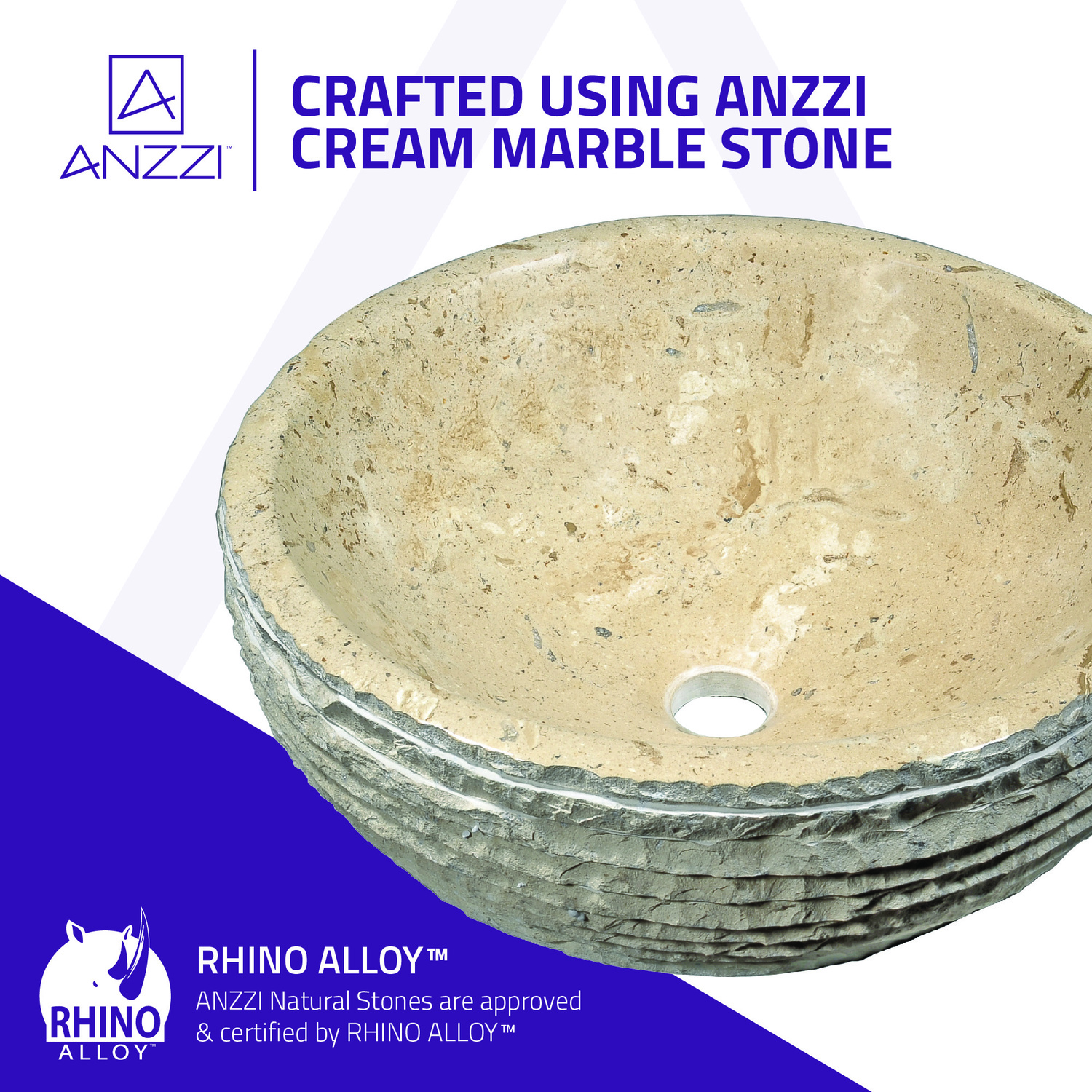 Introducing the ANZZI Desert Basin Classic Cream Marble handcrafted natural stone bathroom sink. Crafted from handpicked, RHINO ALLOY certified samples of Classic Cream Marble ANZZI STONE the Desert Basin is handcrafted and polished to exquisite perfection. ANZZI continues its tradition of introducing rising European trends to the North American market. The natural beauty of this sublime sedimentary sink complements many modern bathroom décor and styles.Richly detailed, handcrafted Classic Cream Marble ANZZI STONERHINO ALLOY certified materialModern European naturalistic décorSilken smooth polished interiorNaturally formed exterior textureFull volume one piece, solid surface craftsmanshipDrain assembly not includedEach Desert Basin is handcrafted and unique so dimensions and textures may varySolid 59.5 lbs. weightShips from factory within 24 hours once order is processedLimited Lifetime WarrantyTo speak to a knowledgeable and dedicated ANZZI specialist simply call 1-844-44-ANZZI or visit us on the web at www.ANZZI.com
