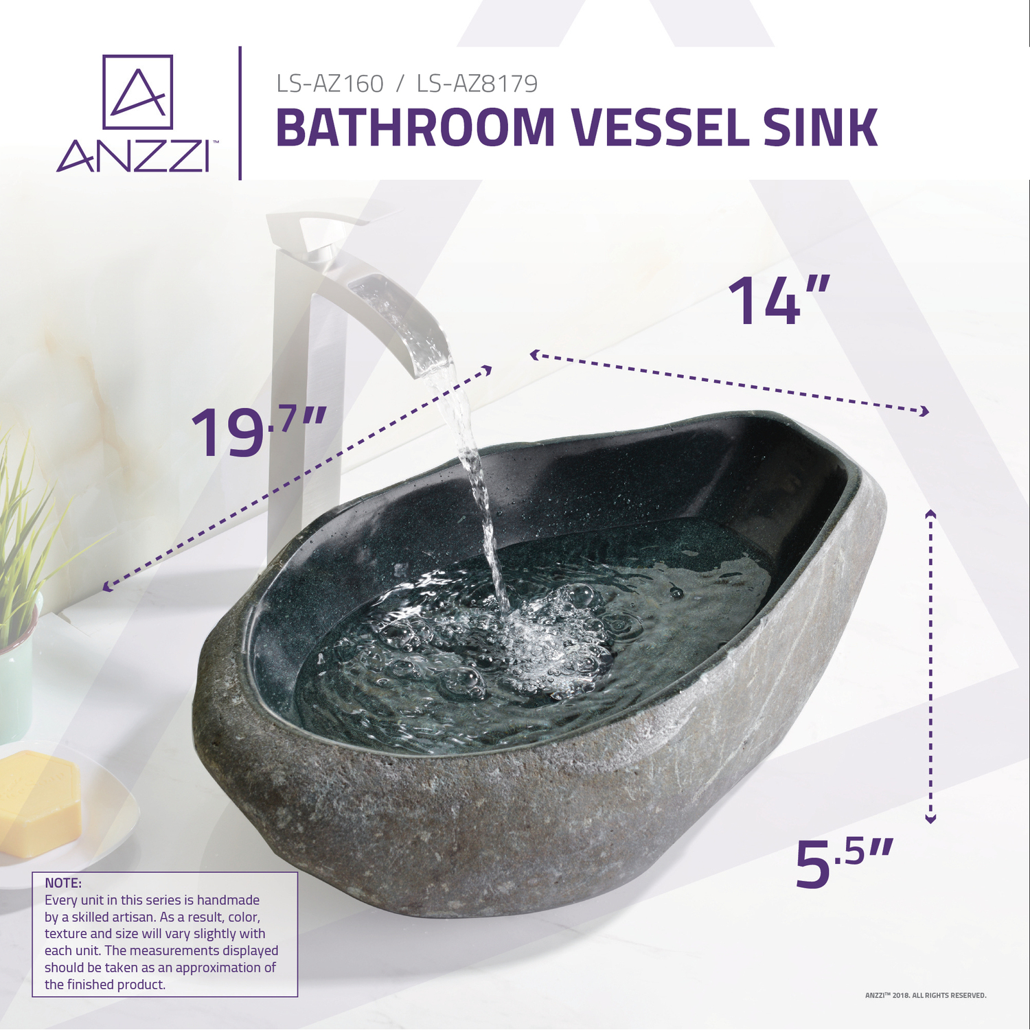 - Richly detailed, handcrafted Dark River Stone ANZZI STONE