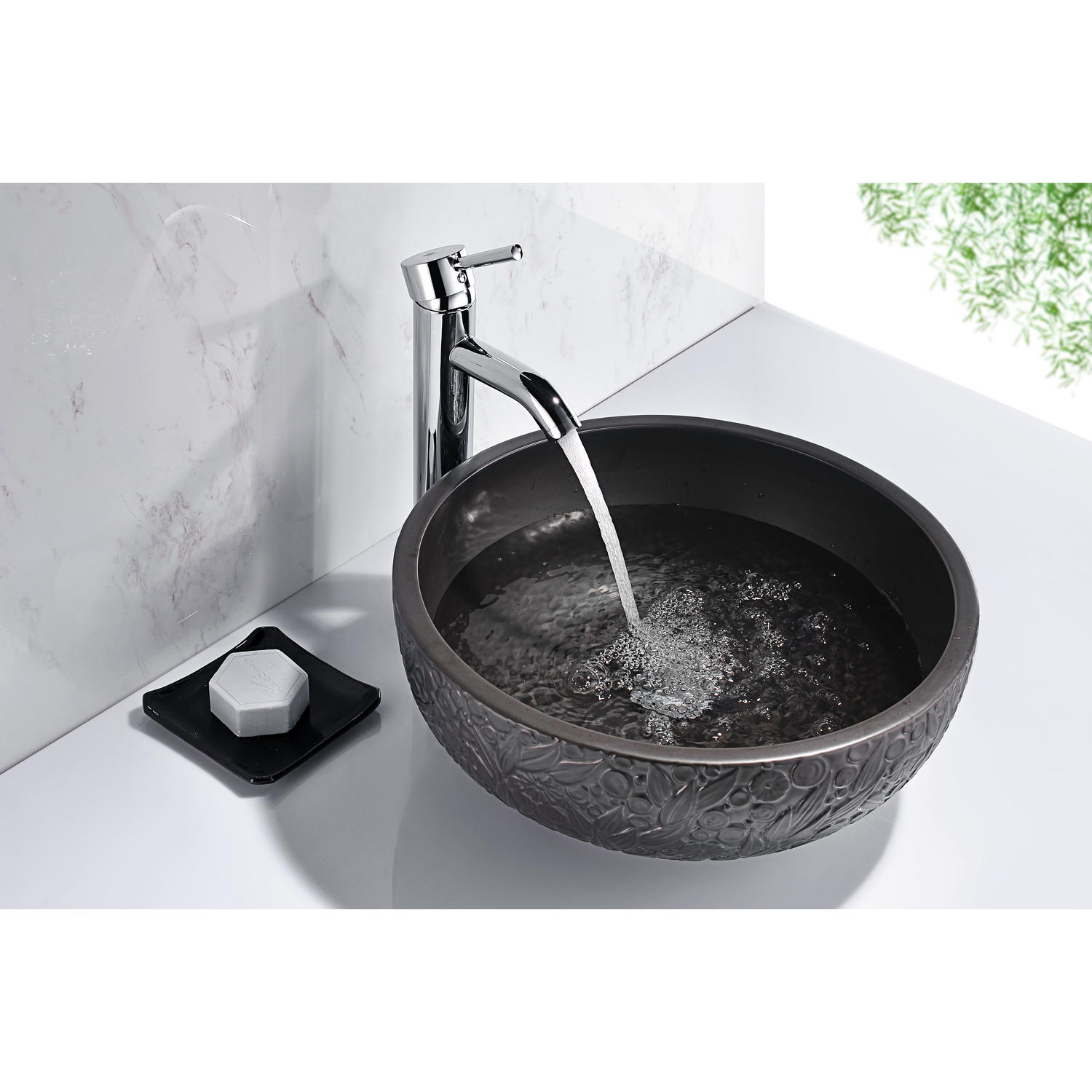 The ANZZI Stellar Series sink is a traditionally crafted round vessel sink adorned in a Black finish. Each ANZZI vessel sink is formed using RHINO ALLOY certified high formed ceramic material. The result is an elegantly shaped and captivating vessel centerpiece for any bathroom counter.RHINO ALLOY certified ceramic constructionScratch-tough and stain-resistant non-porous surfaceEasy-to-clean low maintenanceTop mount installationDimensions: 16.9 in. L x 16.9 in. W x 5.9 in. HDeco-glass thickness: 1/2 in.Single 1.75 in. standard drain openingANZZI Polished Chrome pop-up drain includedShips from factory within 24 hours once order is processedLimited Lifetime WarrantyTo speak to a knowledgeable and dedicated ANZZI specialist simply call 1-844-44-ANZZI or visit us on the web at www.ANZZI.com