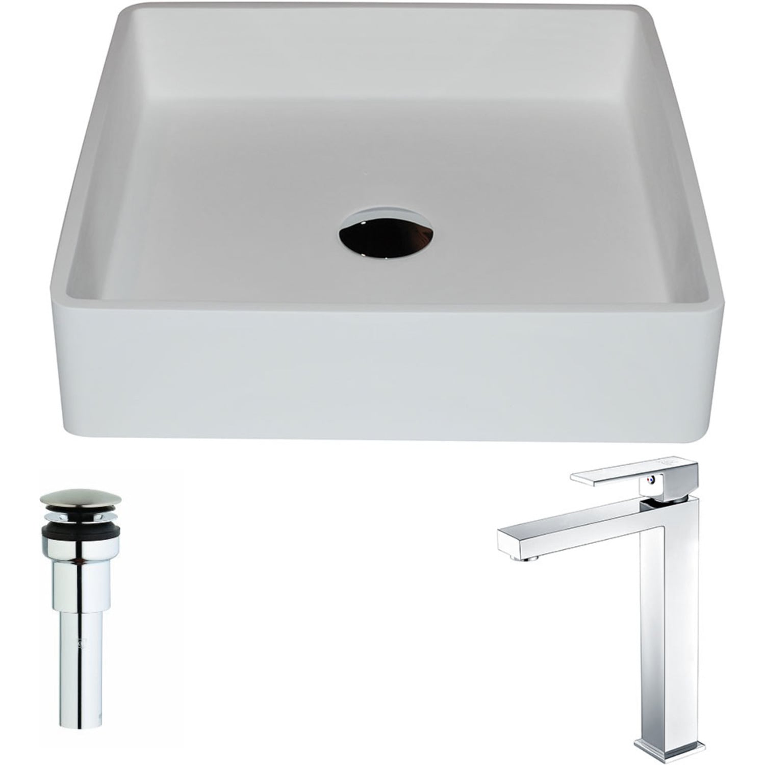 Anzzi Passage Series 1-Piece Solid Surface Vessel Sink in Matte White with Enti Faucet in Polished Chrome, 848308085585, LSAZ602-096