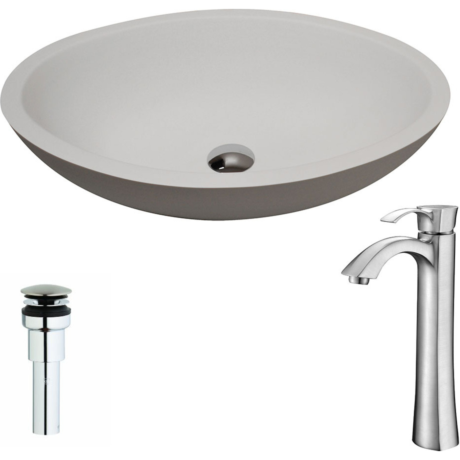 Anzzi Maine Series 1-Piece Solid Surface Vessel Sink in Matte White with Harmony Faucet in Brushed Nickel, 848308083833, LSAZ608-095B