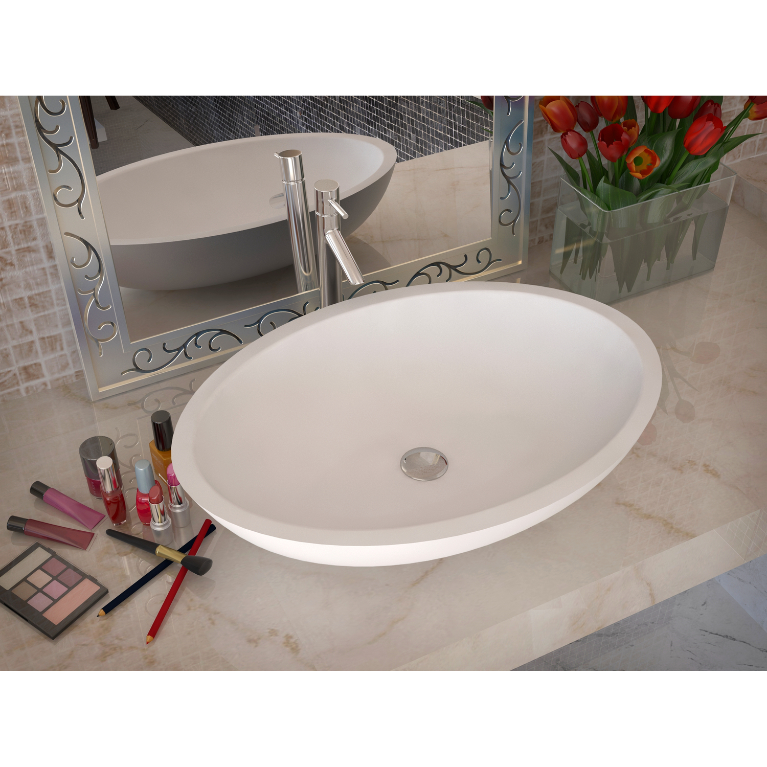 Anzzi Maine 1-Piece Solid Surface Vessel Sink with Pop Up Drain in Matte White, 848308073360, LS-AZ608