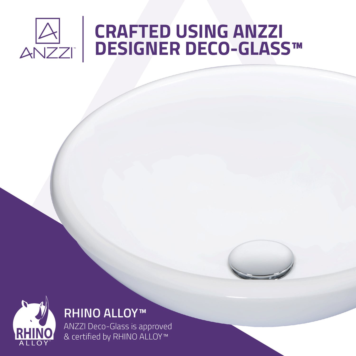 The ANZZI Warika Series sink is a traditionally crafted square vessel sink adorned in a white finish. Each ANZZI vessel sink is formed using RHINO ALLOY certified high tempered Deco-Glass material. The result is an elegantly shaped and captivating vessel centerpiece for any bathroom counter.RHINO ALLOY certified tempered deco-glass construction in a stunning white finishScratch-tough and stain-resistant non-porous surfaceEasy-to-clean low maintenanceTop mount installationDimensions: 15.7 in. L x 15.7 in. W x 5.7 in. HDeco-glass thickness: 1/2 in.Single 1.75 in. standard drain openingANZZI Polished Chrome pop-up drain includedShips from factory within 24 hours once order is processedTo speak to a knowledgeable and dedicated ANZZI specialist simply call 1-844-44-ANZZI or visit us on the web at www.ANZZI.com