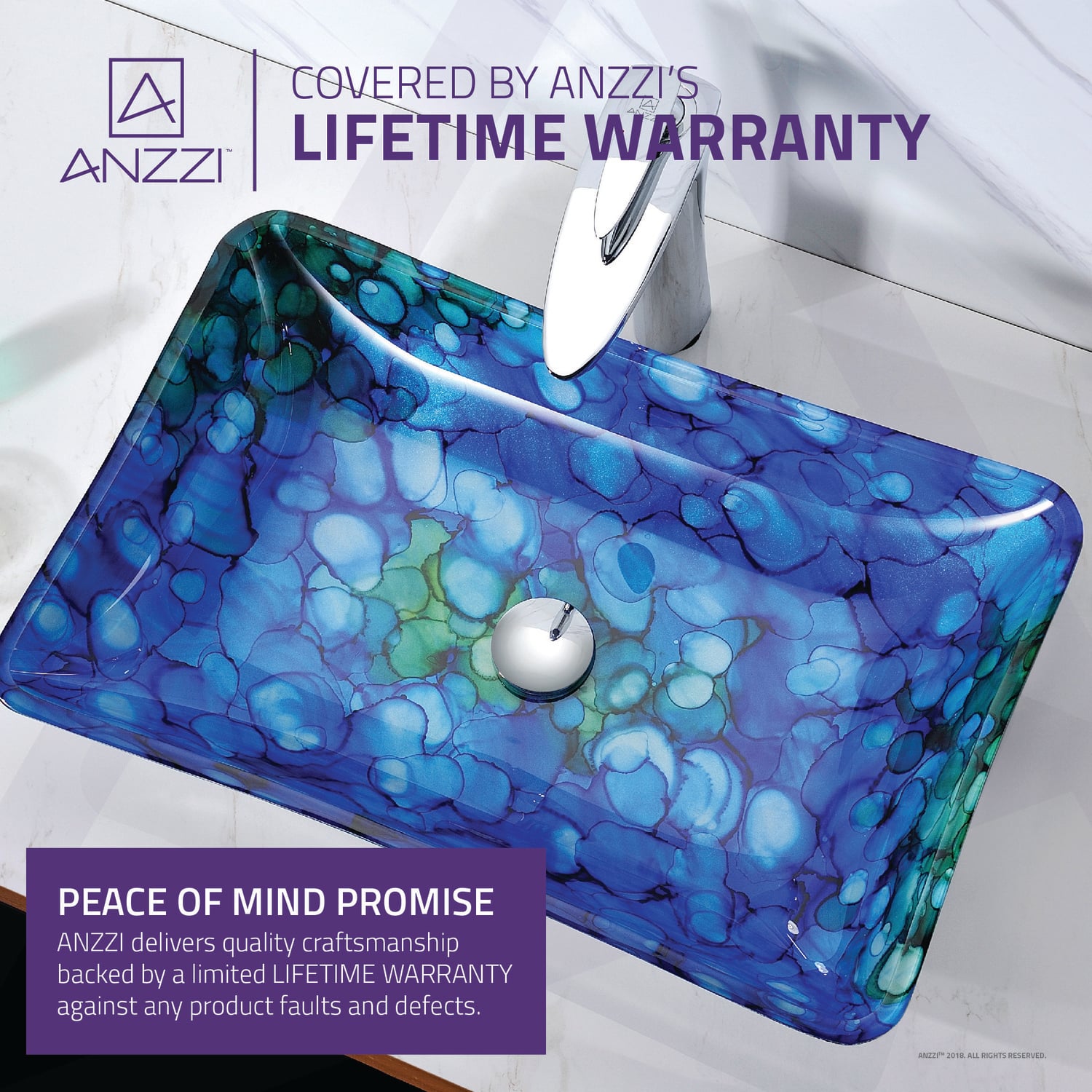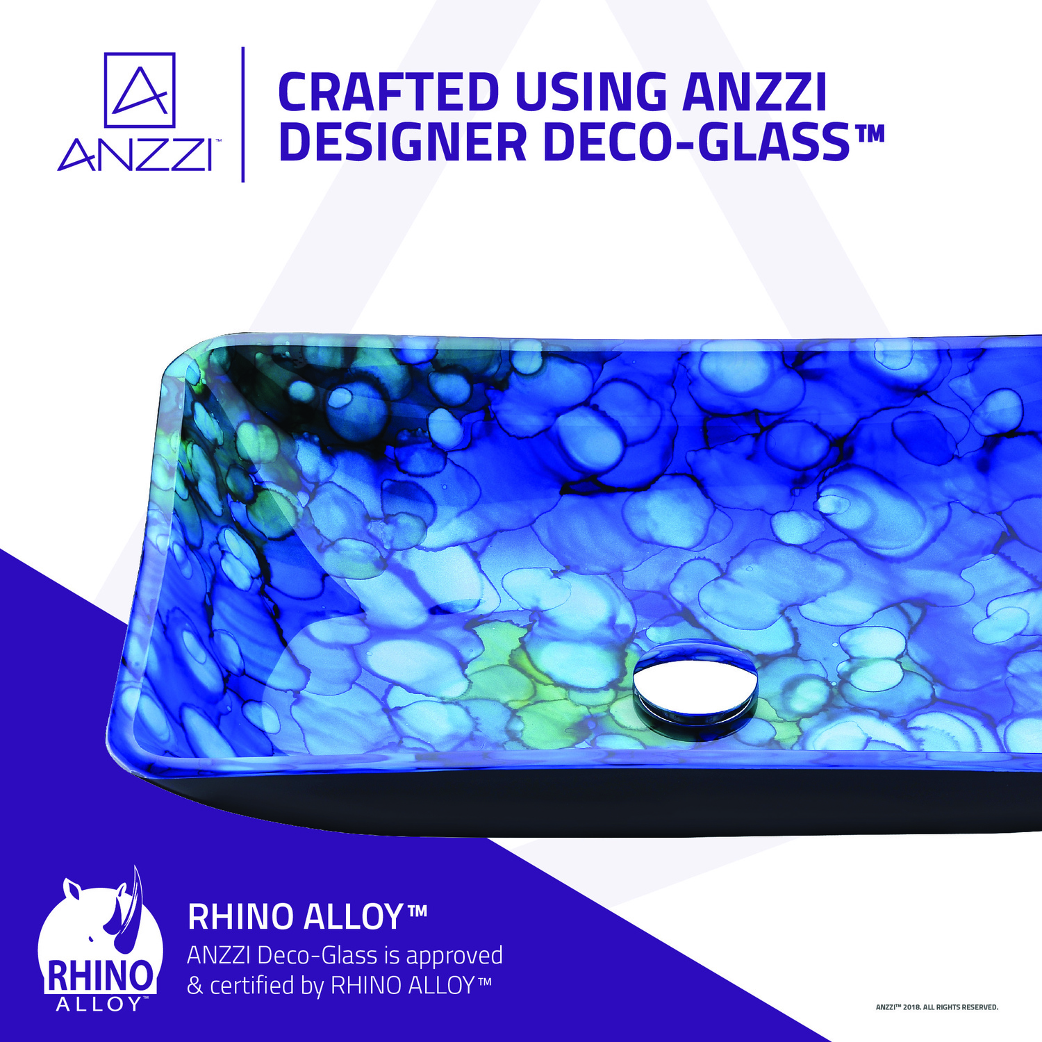The ANZZI Avao Series sink is a traditionally crafted rectangular vessel sink adorned in a Lustrous Blue Finish. Each ANZZI vessel sink is formed using RHINO ALLOY certified high tempered Deco-Glass material. The result is a dynamically shaped and captivating vessel centerpiece for any bathroom counter.Lustrous Blue FinishRHINO ALLOY certified Tempered Deco-Glass constructionScratch-tough and stain-resistant non-porous surfaceEasy-to-clean low maintenanceTop Mount installationDimensions: 22.5 in. L x 14.5 in. W x 4.3 in. HDeco-Glass thickness 1.75 in.Single 3/4 in. standard drain openingLimited Lifetime WarrantyTo speak to a knowledgeable and dedicated ANZZI specialist simply call 1-844-44-ANZZI or visit us on the web at www.ANZZI.comAdditionally, use the following codes to search for exquisite vessel faucet options from ANZZI: L-AZ022 , L-AZ095 , L-AZ095BN , L-AZ096 , L-AZ096BN , L-AZ097 , L-AZ097BN , L-AZ040 , L-AZ041