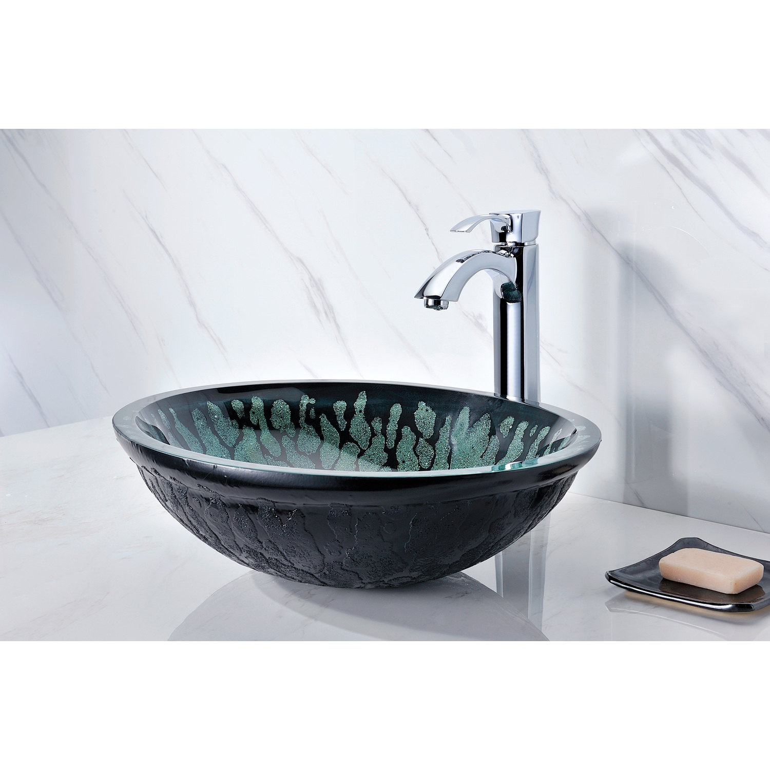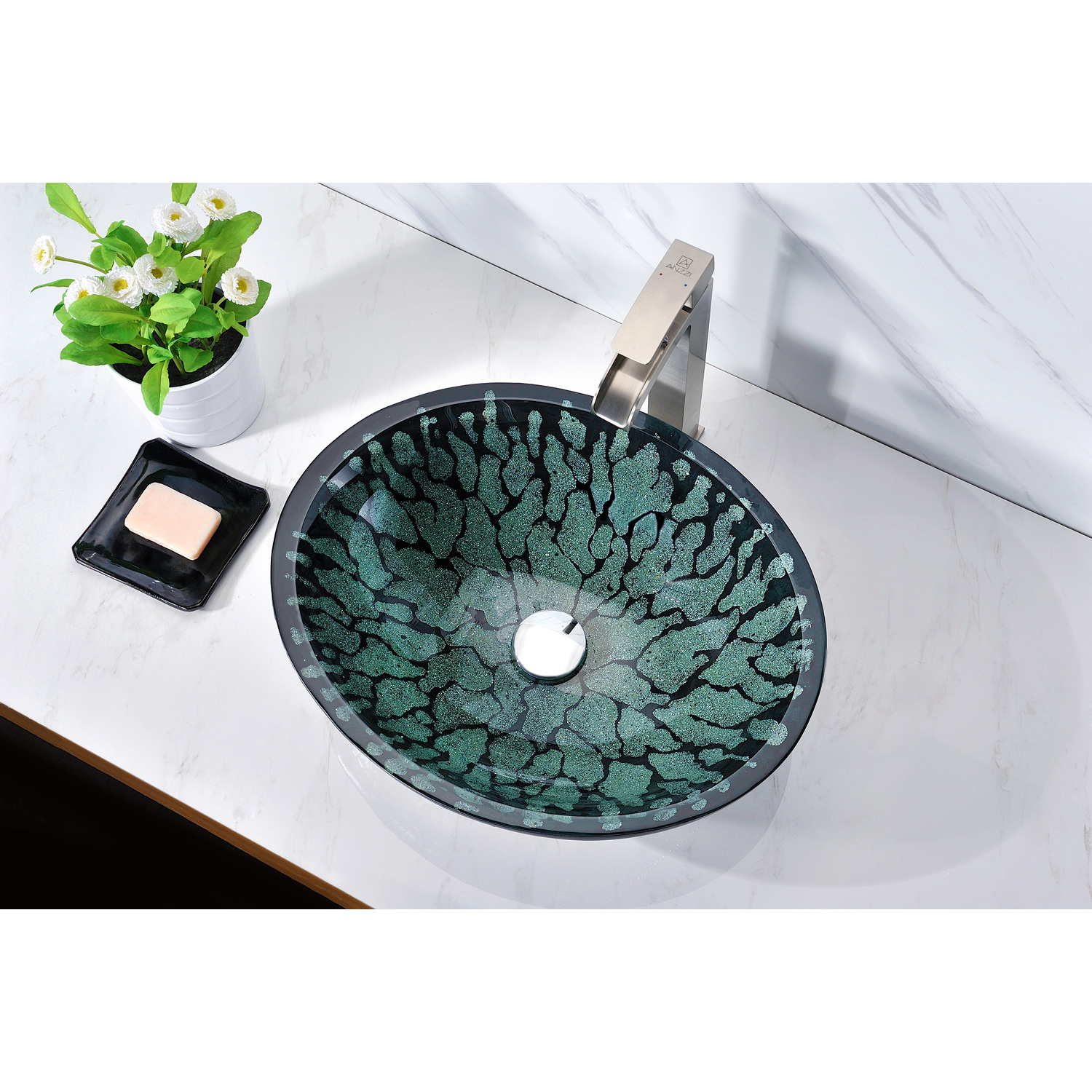 The ANZZI Patuvendi Series sink is a traditionally crafted round vessel sink adorned in a Lustrous Black Finish. Each ANZZI vessel sink is formed using RHINO ALLOY certified high tempered Deco-Glass material. The result is a dynamically shaped and captivating vessel centerpiece for any bathroom counter.Lustrous Black FinishRHINO ALLOY certified Tempered Deco-Glass constructionScratch-tough and stain-resistant non-porous surfaceEasy-to-clean low maintenanceTop Mount installationDimensions: 18.9 in. L x 15.4 in. W x 5.5 in. HDeco-Glass thickness 1.75 in.Single 1.75 in. standard drain openingLimited Lifetime WarrantyTo speak to a knowledgeable and dedicated ANZZI specialist simply call 1-844-44-ANZZI or visit us on the web at www.ANZZI.comAdditionally, use the following codes to search for exquisite vessel faucet options from ANZZI: L-AZ022 , L-AZ095 , L-AZ095BN , L-AZ096 , L-AZ096BN , L-AZ097 , L-AZ097BN , L-AZ040 , L-AZ041