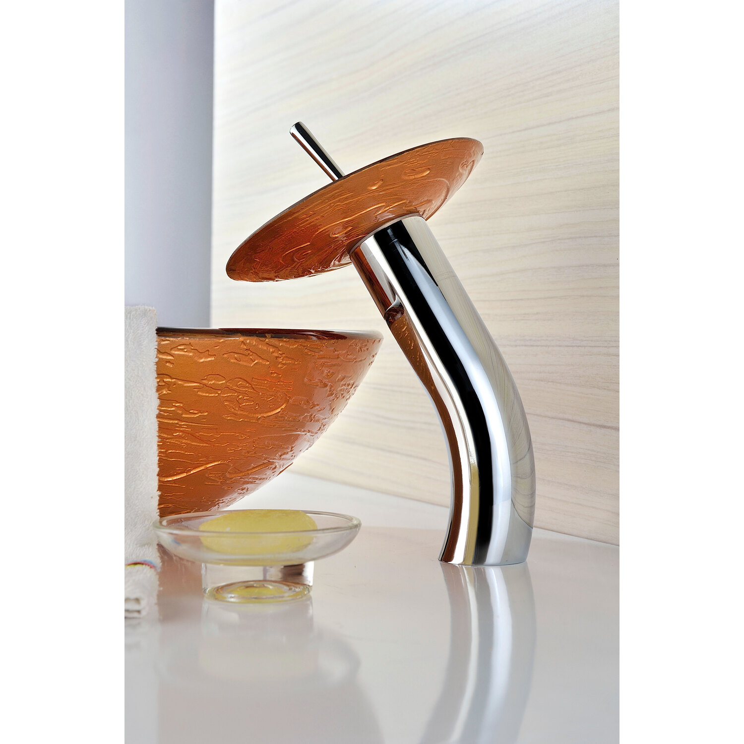 - Single handle Deco-Glass waterfall vessel faucet in matching finish included