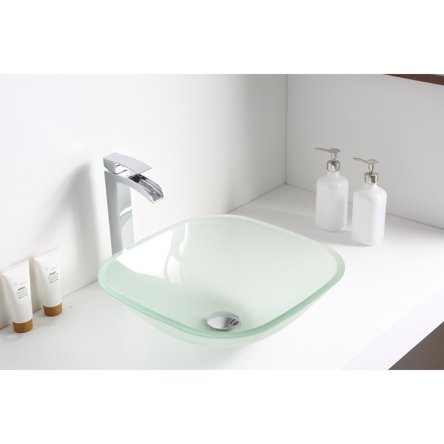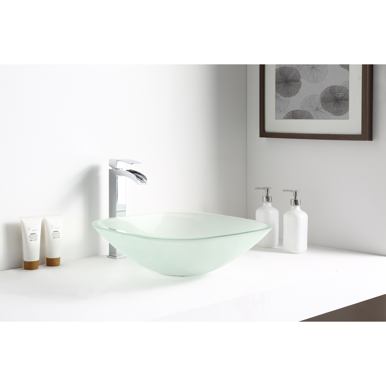 The ANZZI Victor Series sink is a traditionally crafted squared vessel sink adorned in a Lustrous Frosted Finish. Each ANZZI vessel sink if formed using RHINO ALLOY certified high tempered Deco-Glass material. The result is a perfectly shaped dynamically captivating vessel centerpiece for any bathroom counter.Lustrous Frosted FinishRHINO ALLOY certified Tempered Deco-Glass constructionScratch-tough and stain-resistant non-porous surfaceEasy-to-clean low maintenanceTop Mount installationDimensions: 16.5 in. L x 16.5 in. W x 5.125 in. HDeco-Glass thickness 1/2 in.Single 3/4 in. standard drain openingANZZI pop-up drain includedShips from factory within 24 hours once order is processedLifetime WarrantyTo speak to a knowledgeable and dedicated ANZZI specialist simply call 1-844-44-ANZZI or visit us on the web at www.ANZZI.comAdditionally, use the following codes to search for exquisite vessel faucet options from ANZZI: L-AZ022 , L-AZ095 , L-AZ095BN , L-AZ096 , L-AZ096BN , L-AZ097 , L-AZ097BN , L-AZ040 , L-AZ041