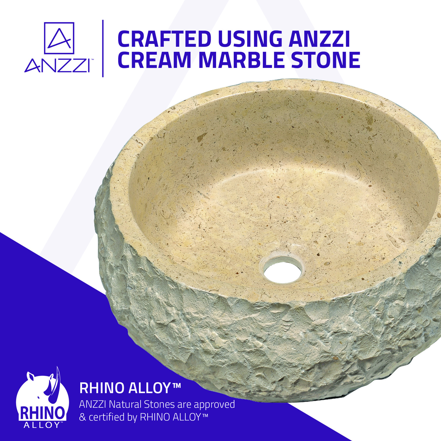 Introducing the ANZZI Lighting Classic Cream Marble handcrafted natural stone bathroom sink. Crafted from handpicked, RHINO ALLOY certified samples of Classic Cream Marble ANZZI STONE the Lighting is handcrafted and polished to exquisite perfection. ANZZI continues its tradition of introducing rising European trends to the North American market. The natural beauty of this sublime sedimentary sink complements many modern bathroom décor and styles.Richly detailed, handcrafted Classic Cream Marble ANZZI STONERHINO ALLOY certified materialModern European naturalistic décorSilken smooth polished interiorNaturally formed exterior textureFull volume one piece, solid surface craftsmanshipDrain assembly not includedEach Lighting is handcrafted and unique so dimensions and textures may varySolid 53 lbs. weightShips from factory within 24 hours once order is processedLimited Lifetime WarrantyTo speak to a knowledgeable and dedicated ANZZI specialist simply call 1-844-44-ANZZI or visit us on the web at www.ANZZI.com
