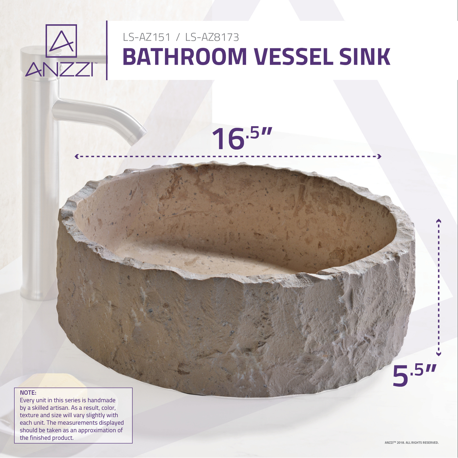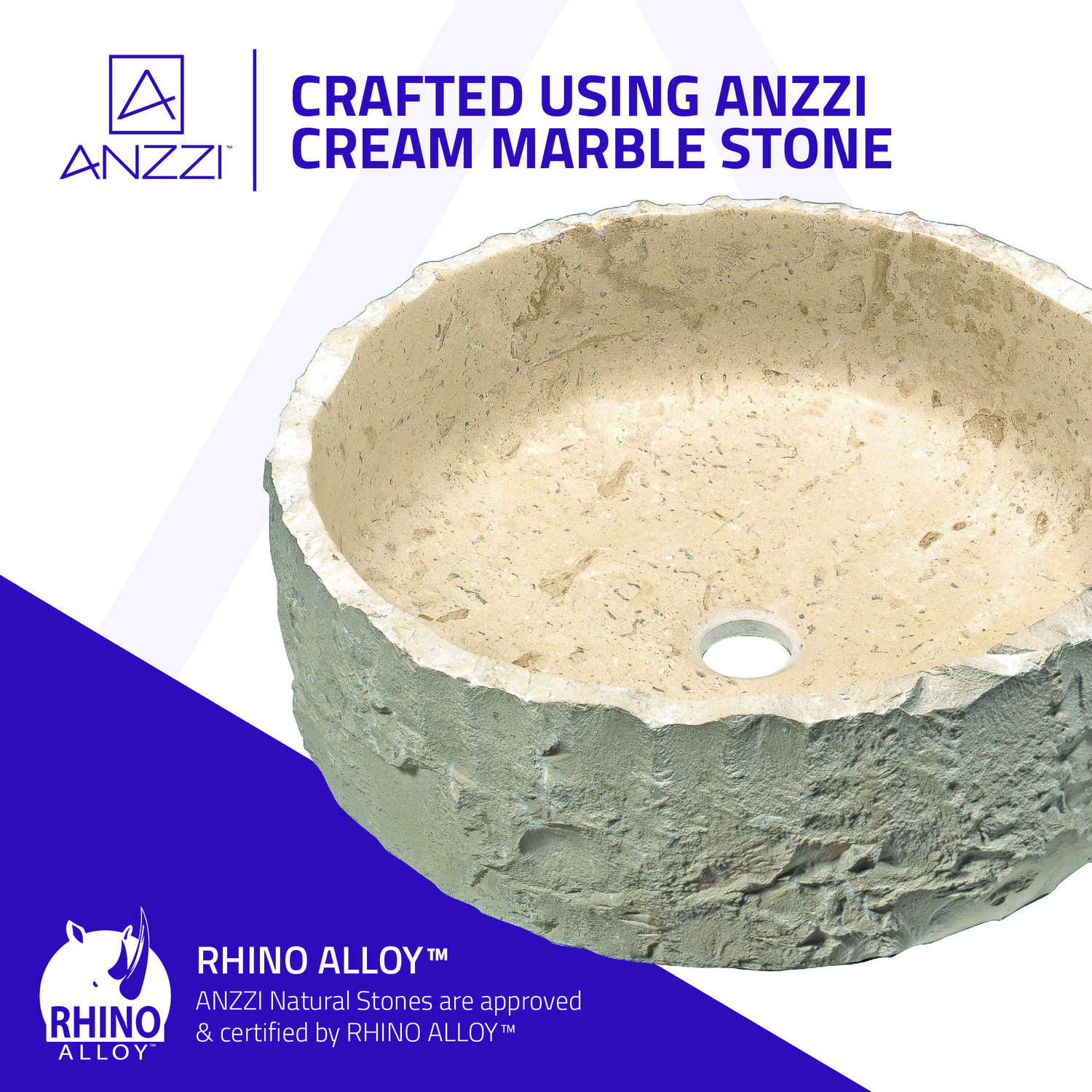 - Richly detailed, handcrafted Classic Cream Marble ANZZI STONE