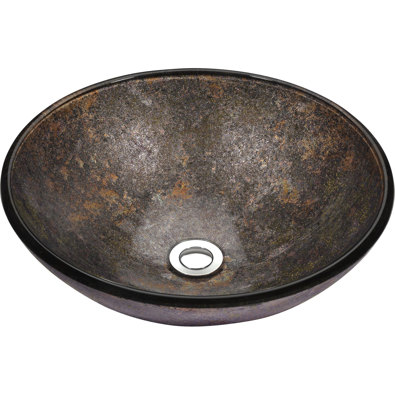 The ANZZI Tara Series sink is a traditionally crafted round vessel sink adorned in a Stellar Burst finish. Each ANZZI vessel sink is formed using RHINO ALLOY certified high tempered Deco-Glass material. The result is an elegantly shaped and captivating vessel centerpiece for any bathroom counter.RHINO ALLOY certified tempered deco-glass constructionScratch-tough and stain-resistant non-porous surfaceEasy-to-clean low maintenanceTop mount installationDimensions: 16.5 in. L x 16.5 in. W x 5.7 in. HDeco-glass thickness: 1/2 in.Single 1.75 in. standard drain openingANZZI Polished Chrome pop-up drain includedShips from factory within 24 hours once order is processedLimited Lifetime WarrantyTo speak to a knowledgeable and dedicated ANZZI specialist simply call 1-844-44-ANZZI or visit us on the web at www.ANZZI.com