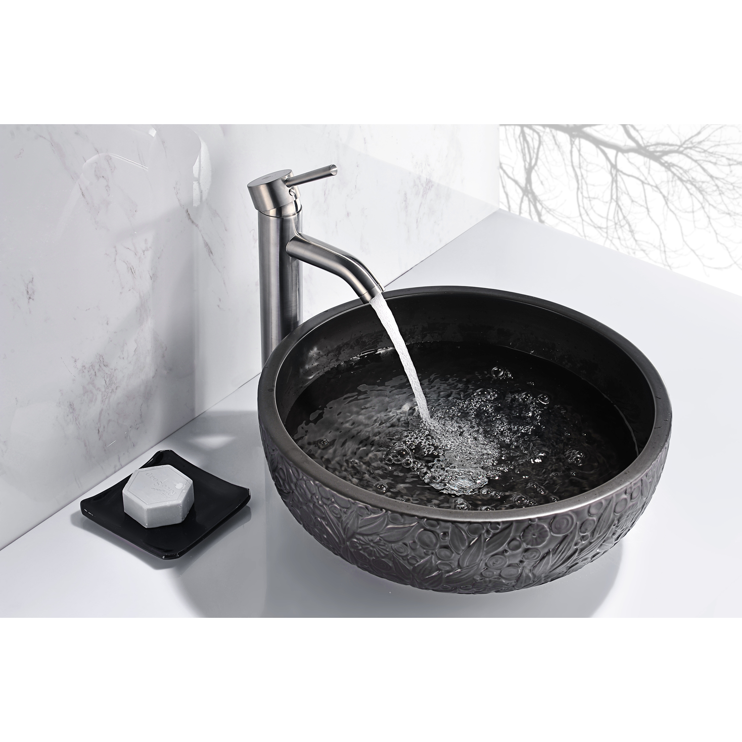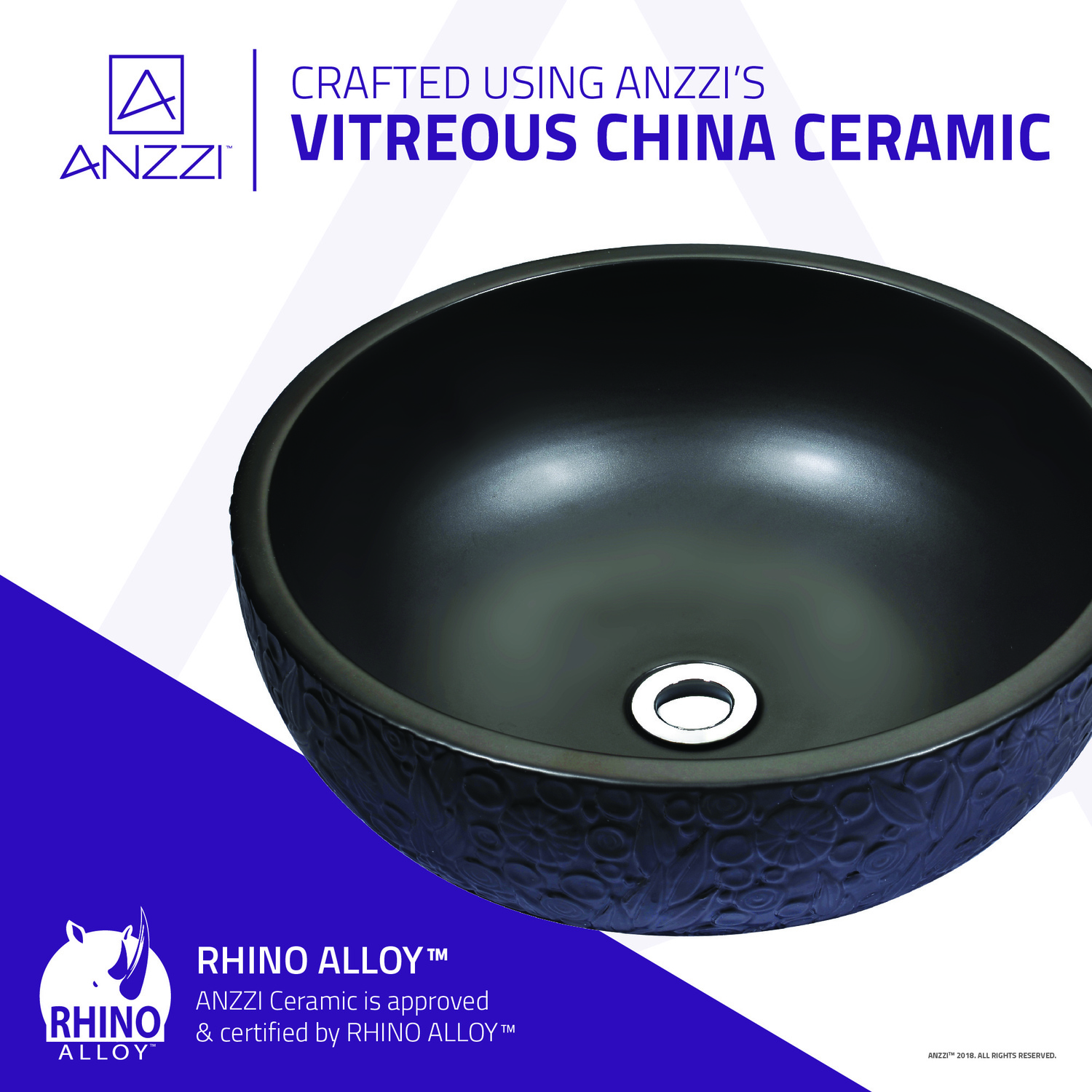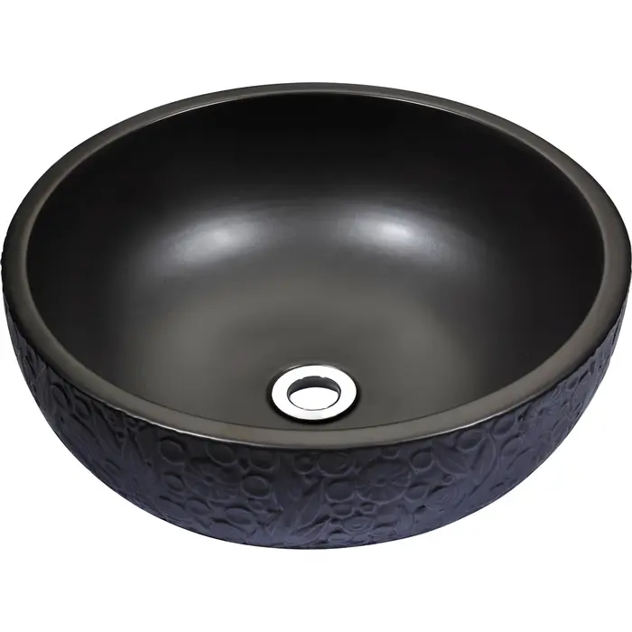 The ANZZI Tara Series sink is a traditionally crafted round vessel sink adorned in a Black finish. Each ANZZI vessel sink is formed using RHINO ALLOY certified high formed ceramic material. The result is an elegantly shaped and captivating vessel centerpiece for any bathroom counter.RHINO ALLOY certified ceramic constructionScratch-tough and stain-resistant non-porous surfaceEasy-to-clean low maintenanceTop mount installationDimensions: 16.9 in. L x 16.9 in. W x 5.9 in. HDeco-glass thickness: 1/2 in.Single 1.75 in. standard drain openingANZZI Polished Chrome pop-up drain includedShips from factory within 24 hours once order is processedLimited Lifetime WarrantyTo speak to a knowledgeable and dedicated ANZZI specialist simply call 1-844-44-ANZZI or visit us on the web at www.ANZZI.com