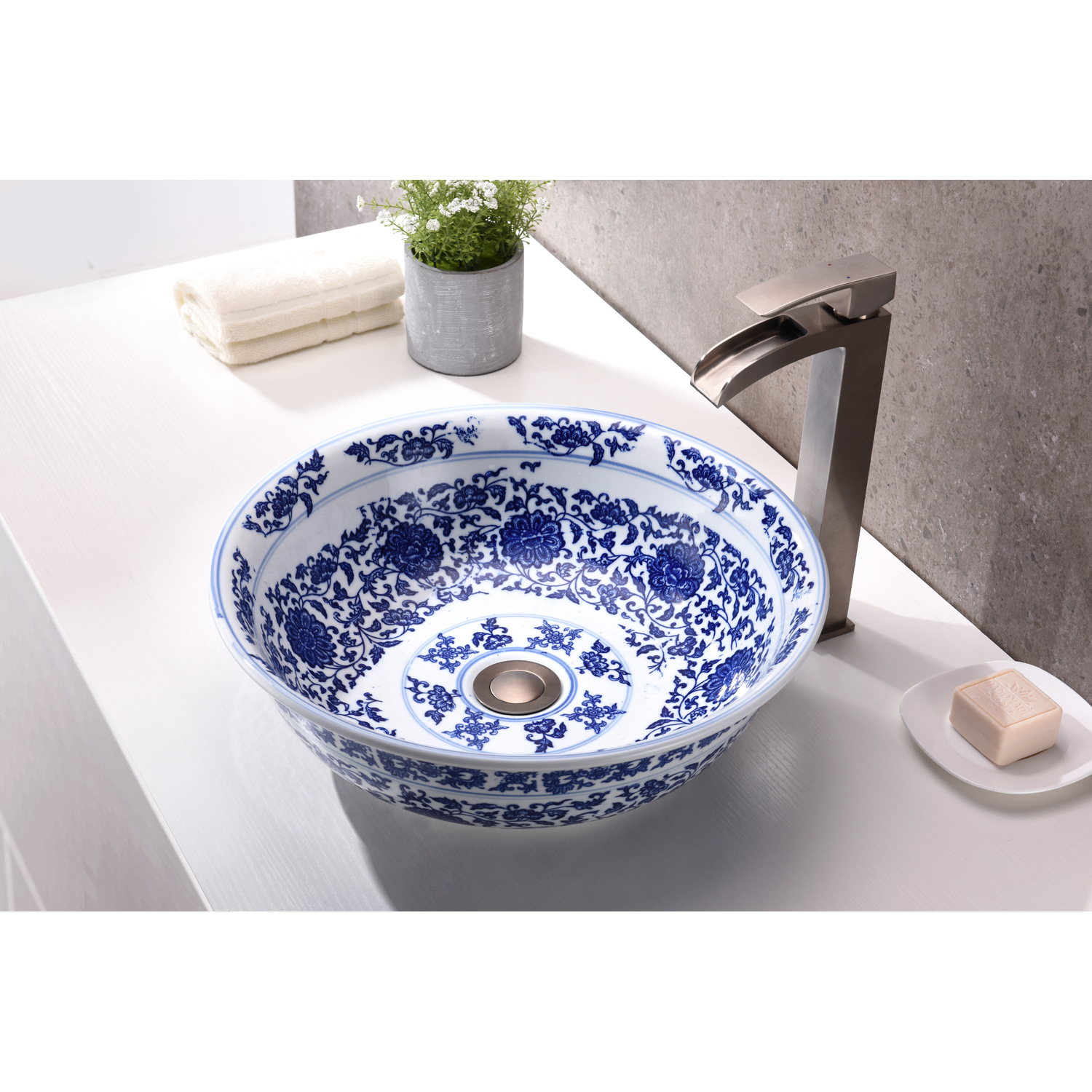 The ANZZI Satui Series sink is a traditionally crafted round vessel sink adorned in a Décor White finish. Each ANZZI vessel sink is formed using RHINO ALLOY certified high tempered Deco-Glass material. The result is an elegantly shaped and captivating vessel centerpiece for any bathroom counter.RHINO ALLOY certified tempered deco-glass construction in a stunning Décor White finishScratch-tough and stain-resistant non-porous surfaceEasy-to-clean low maintenanceTop mount installationDimensions: 16.1 in. L x 16.1 in. W x 6.5 in. HDeco-glass thickness: 1/2 in.Single 1.75 in. standard drain openingANZZI Polished Chrome pop-up drain includedShips from factory within 24 hours once order is processedLimited Lifetime WarrantyTo speak to a knowledgeable and dedicated ANZZI specialist simply call 1-844-44-ANZZI or visit us on the web at www.ANZZI.com
