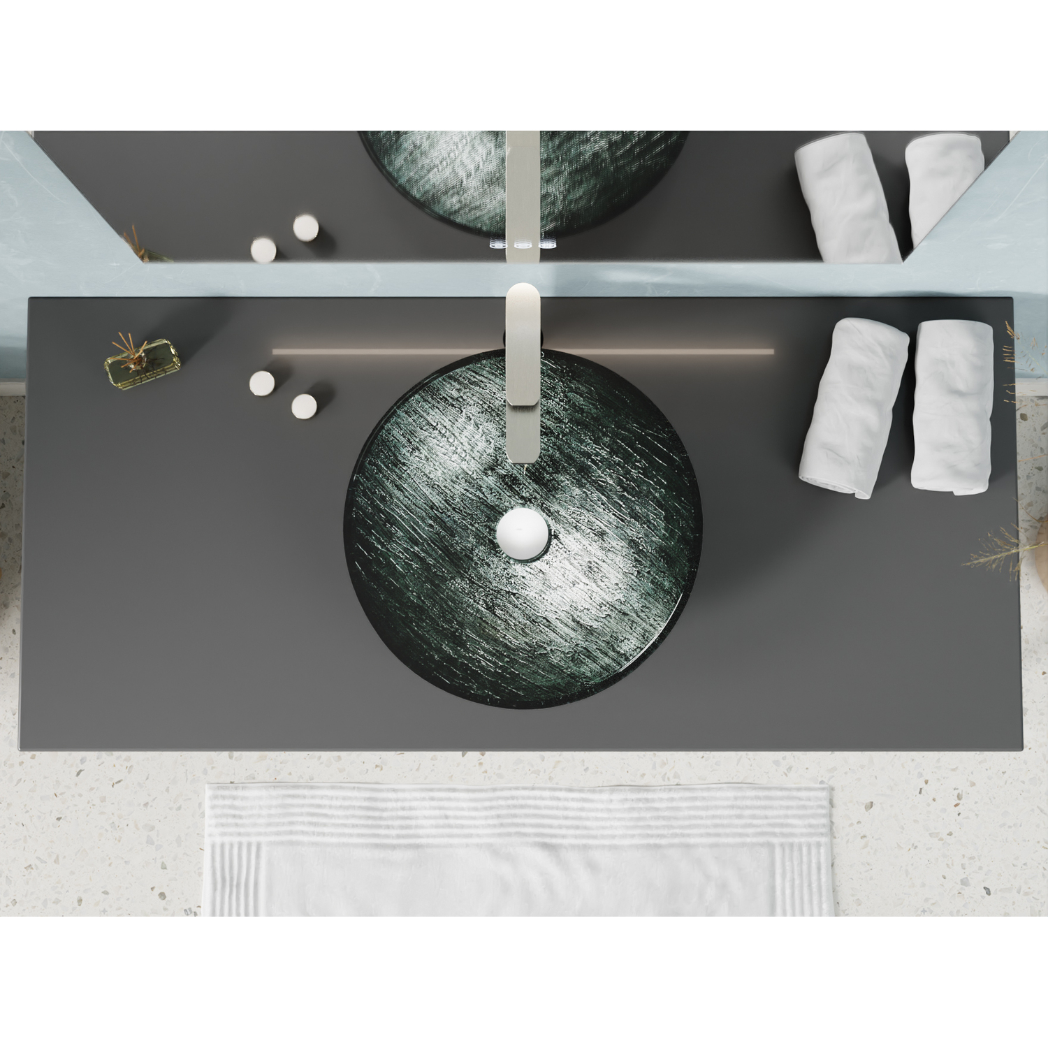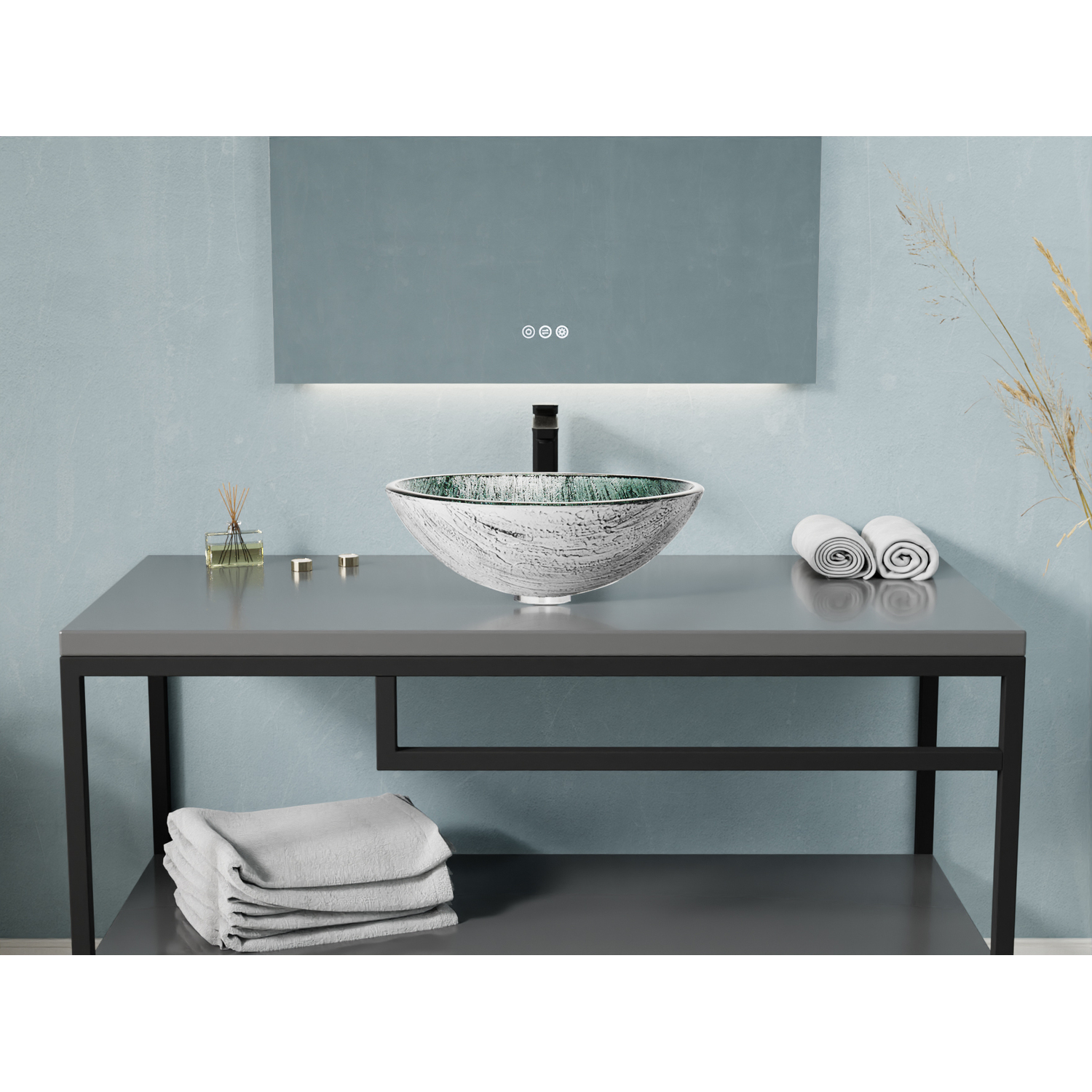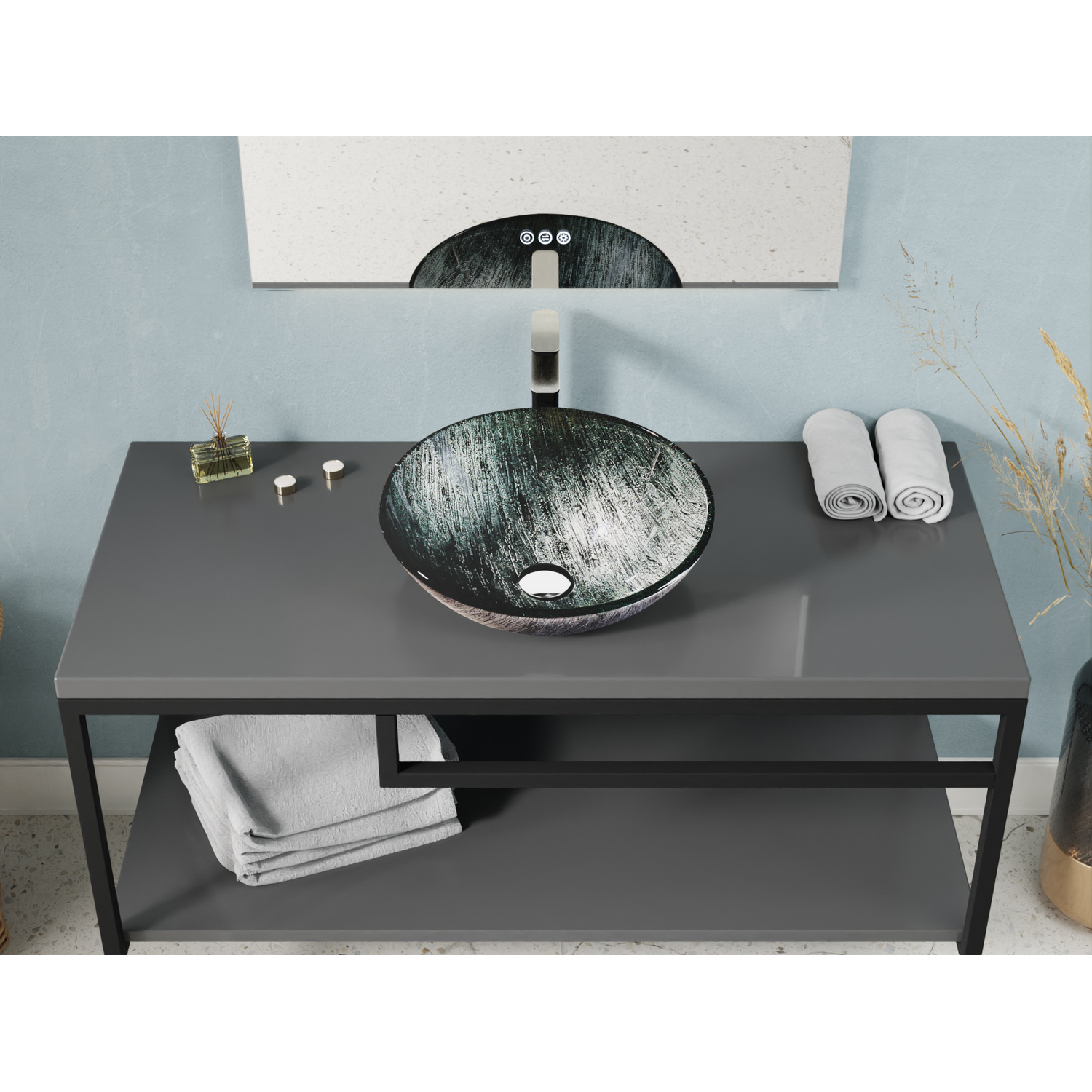 Anzzi Amalfi Round Glass Vessel Bathroom Sink with Stellar Grey Finish, 191042074538, LS-AZ903