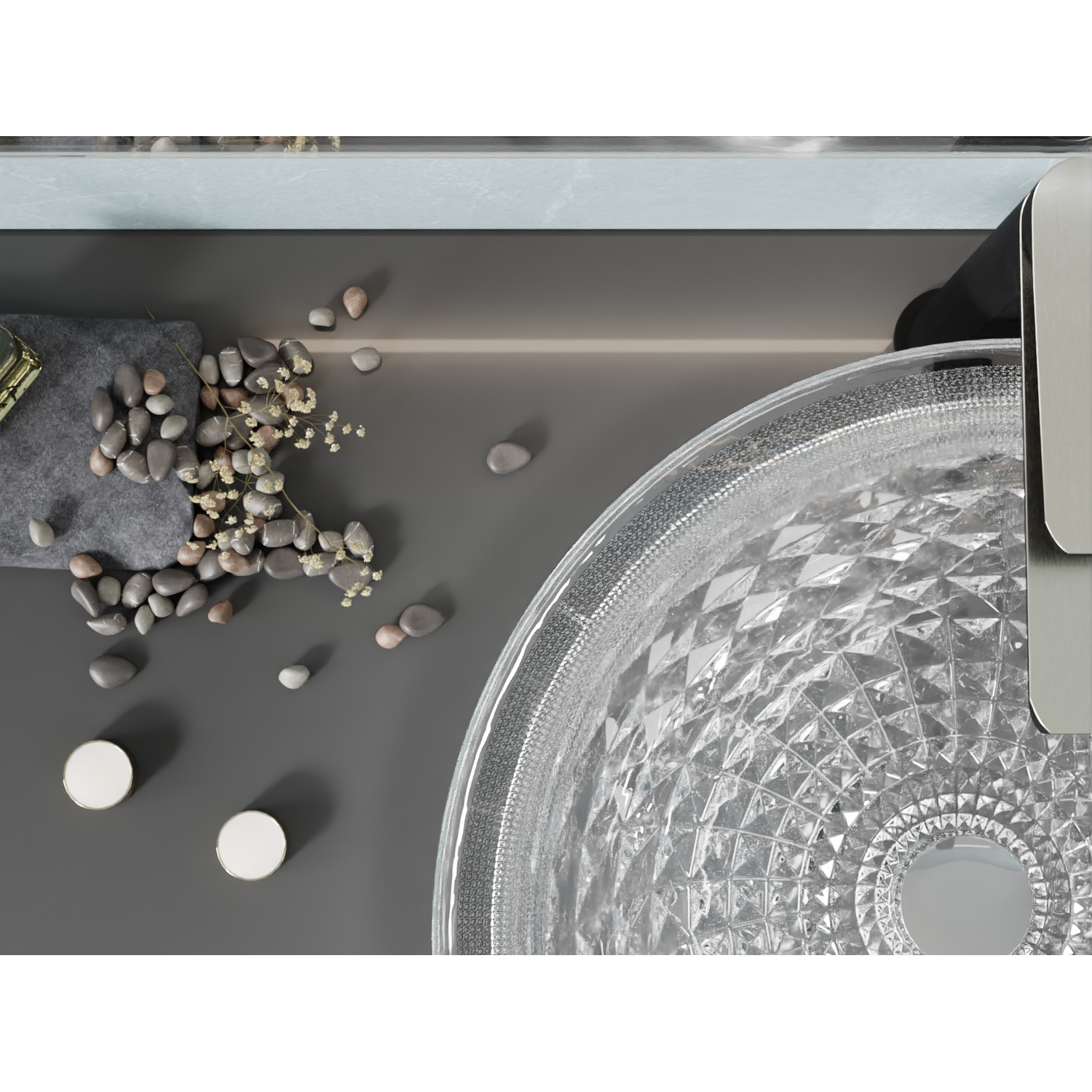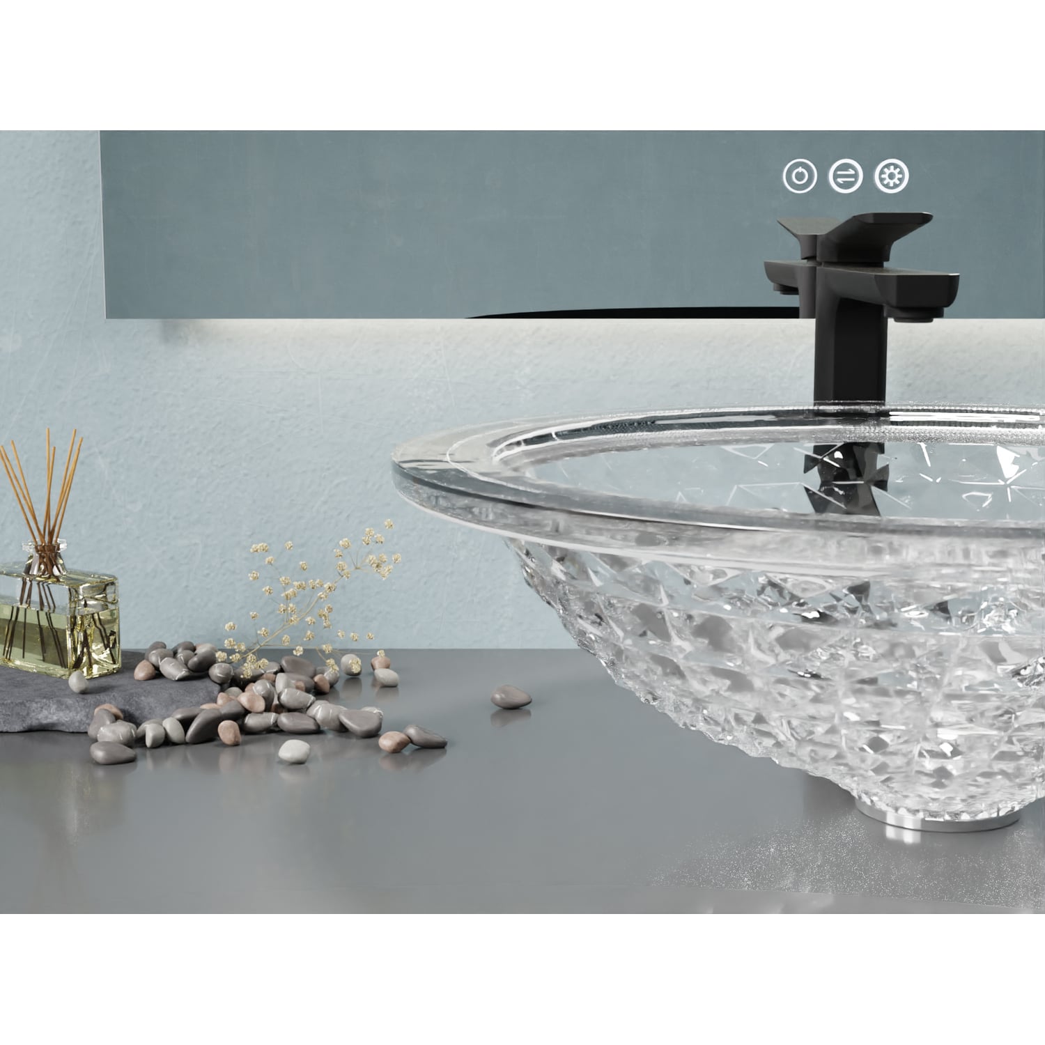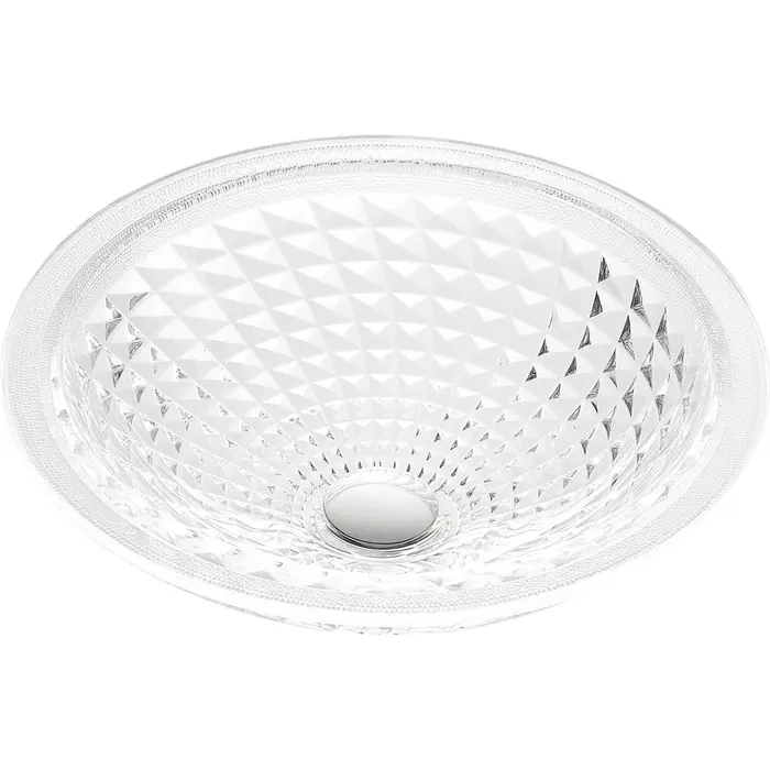 Is it a sink? Or an object of art? Both, actually. Our Diamante vessel sink is crafted from premium glass and styled to look like sculpted crystal, with a faceted design that’s traditional yet trendy. It mounts to the top of your vanity (instead of into it) to create a look that’s chic and unique, while freeing up space in the cabinet below and on the countertop. Includes a chrome pop-up drain so it’s ready to install.SMART, SOPHISTICATED DESIGN — the sublime artistic styling stands out in all the right ways, while saving space in your bathroom or powder roomSTURDY ONE-PIECE CONSTRUCTION — built from premium glass, so you can be confident your Diamante sink will stand the test of timeTIMELESS FACETED CRYSTAL LOOK— stays gorgeous year after yearCOMES COMPLETE WITH CHROME POP-UP DRAIN — your sink is ready to install right out of the boxINNER DIMENSIONS — 15.32 in. Diam. x 5.03 in. HOUTER DIMENSIONS — 16.5 in. Diam. x 5.5 in. HBOTTOM WIDTH — 3.54 in.INCLUDES EVERYTHING YOU NEED — package includes drain assembly and mounting hardwareLIMITED LIFETIME WARRANTY — when you buy it, we back it, so you can be confident in the quality of our productsGET IT FAST — ships from warehouse within 24 hours of order processingCURBSIDE DELIVERY — buying an ANZZI product is always easy and convenientProfessional installation highly recommended