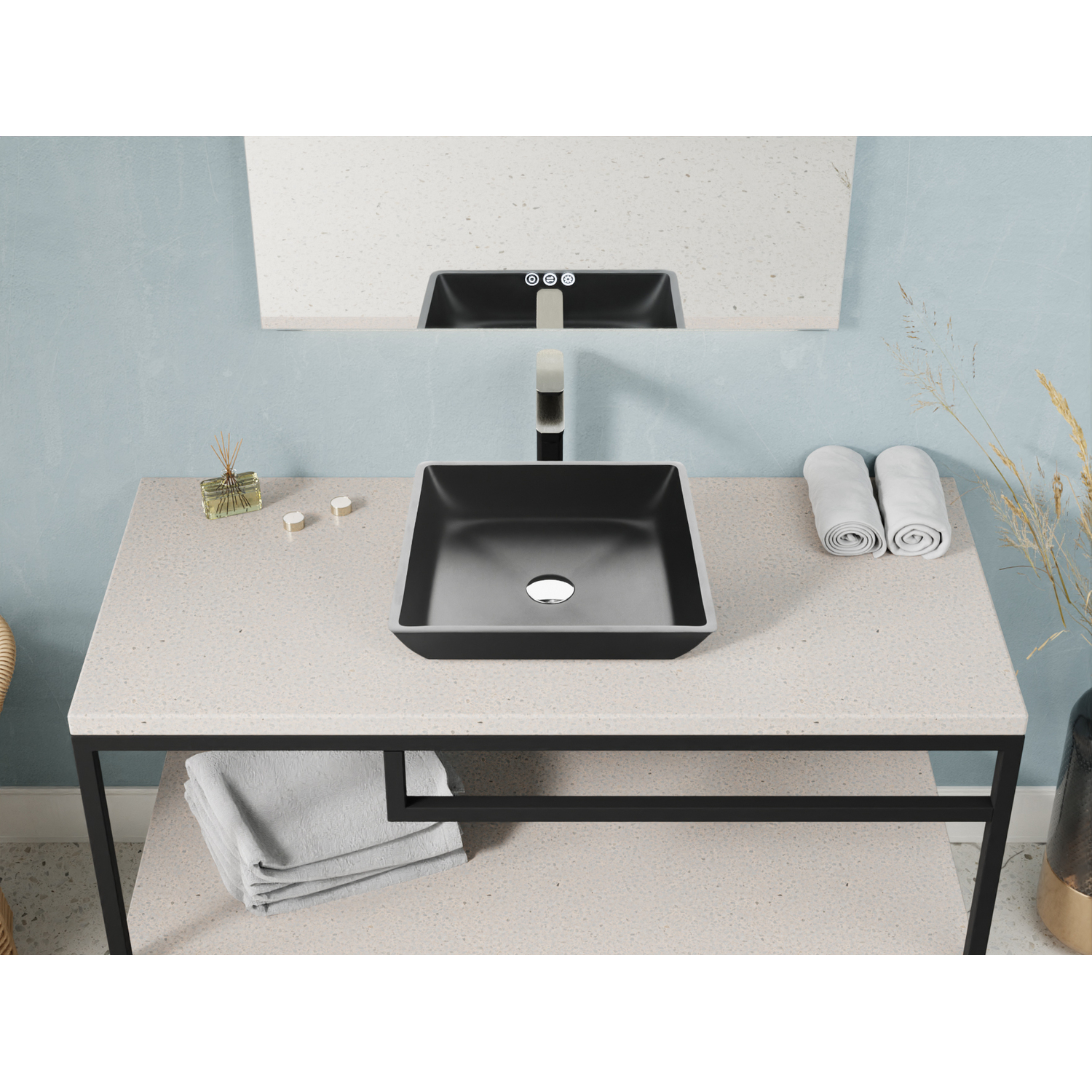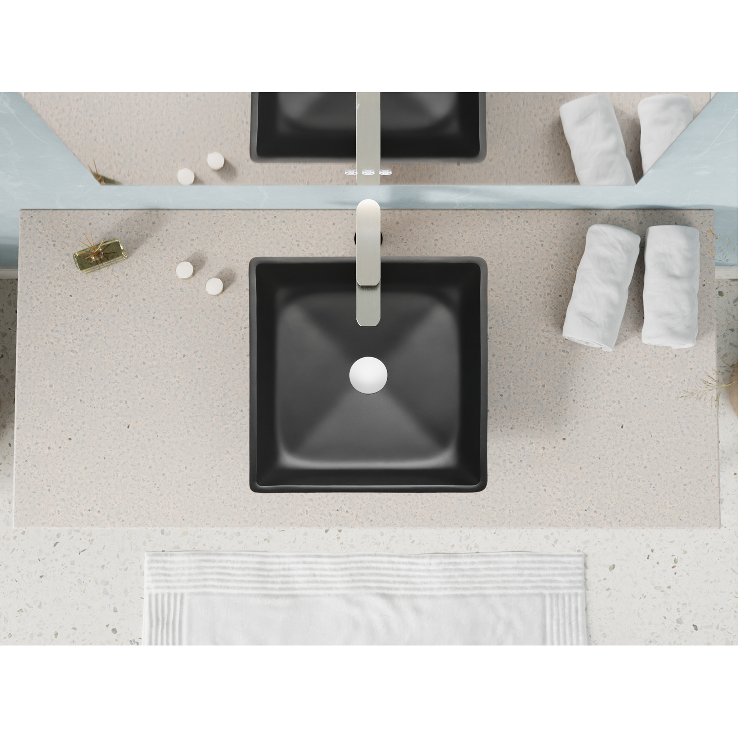 The tastefully minimalist design of our Solstice sink creates maximum appeal for any bathroom space. Sleep simple lines pair with a dramatic Matte Black finish to create a striking statement of modernistic flair. The Solstice mounts to the top of your vanity (instead of into it) to create a look that’s chic and unique, while freeing up space in the cabinet below and on the countertop. We’ve included a chrome pop-up drain so it’s ready to install.SMART, SOPHISTICATED DESIGN — the sublime artistic styling stands out in all the right ways, while saving space in your bathroom or powder roomSTURDY ONE-PIECE CONSTRUCTION — built from premium glass, so you can be confident your Solstice sink will stand the test of timeBOLD MATTE BLACK FINISH — looks gorgeous year after yearNANO-WATER COATED — Protective water guard coating fights against soap and water stainsCOMES COMPLETE WITH CHROME POP-UP DRAIN — your sink is ready to install right out of the boxINNER DIMENSIONS — 14.85 in. W x 14.85 in. D x 3.83 in. HOUTER DIMENSIONS — 15.8 in. W x 15.8 in. D x 4.3 in. HBOTTOM WIDTH — 13.58 in.INCLUDES EVERYTHING YOU NEED — package includes drain assembly and mounting hardwareLIMITED LIFETIME WARRANTY — when you buy it, we back it, so you can be confident in the quality of our productsGET IT FAST — ships from warehouse within 24 hours of order processingCURBSIDE DELIVERY — buying an ANZZI product is always easy and convenientProfessional installation highly recommendedAlso available in White #LS-AZ912