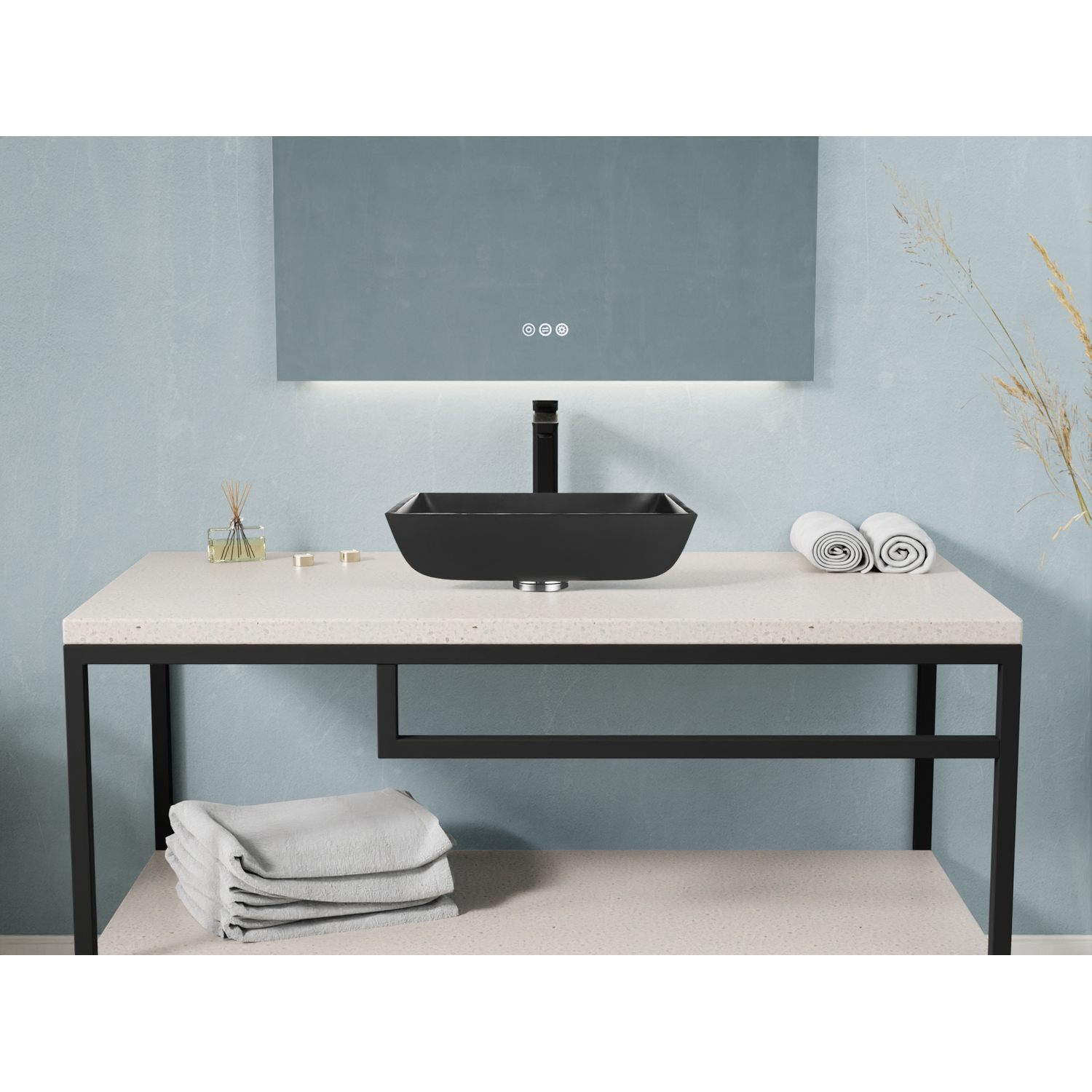 Anzzi Solstice Square Glass Vessel Bathroom Sink with Matte Black Finish, 191042074569, LS-AZ906MB
