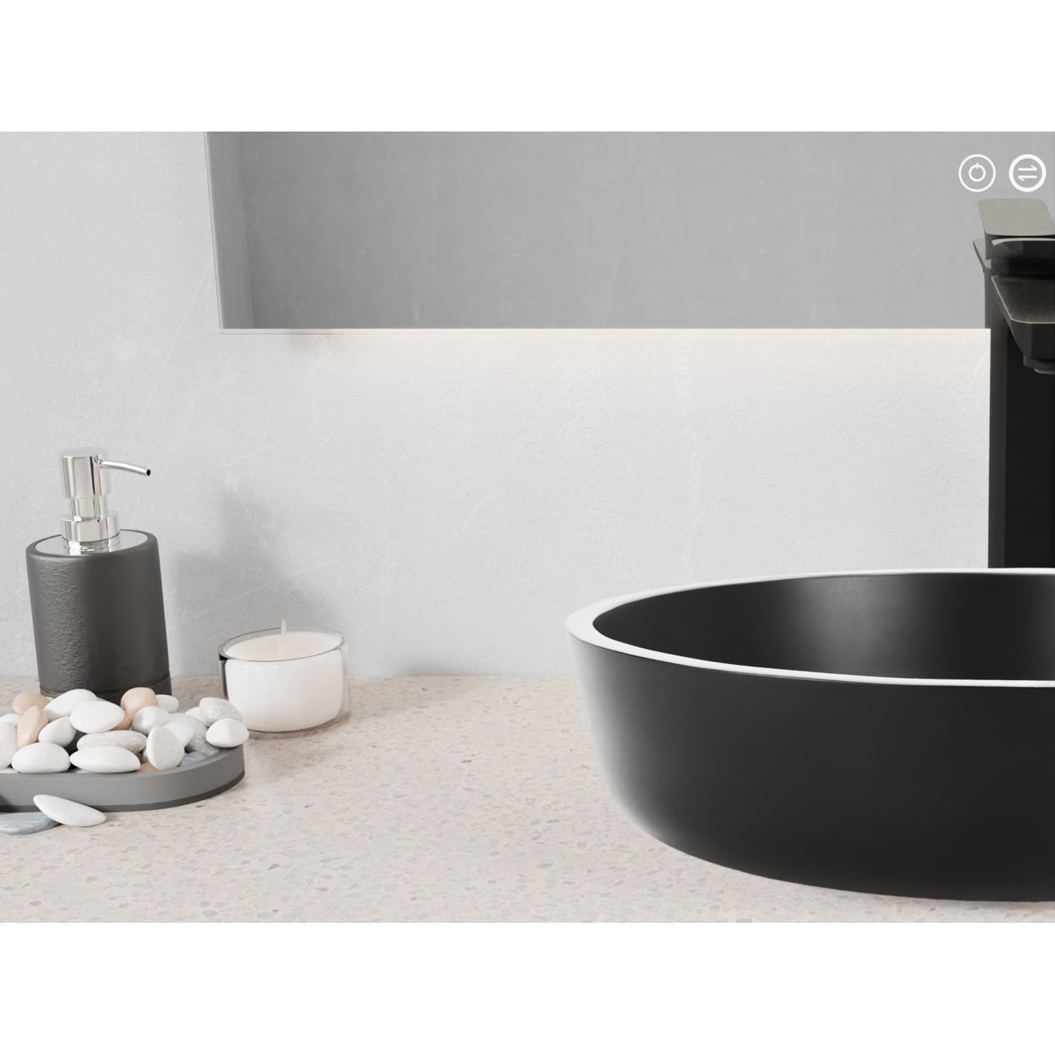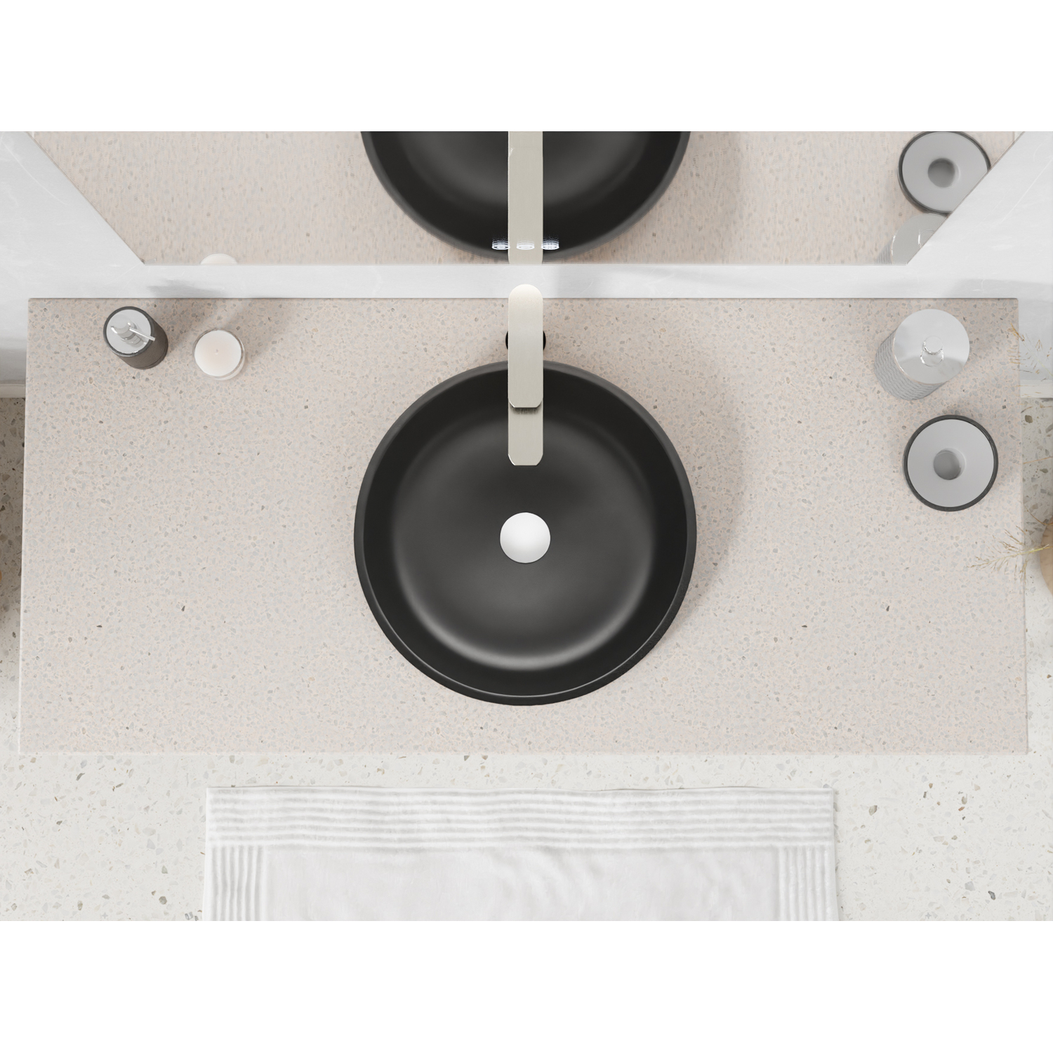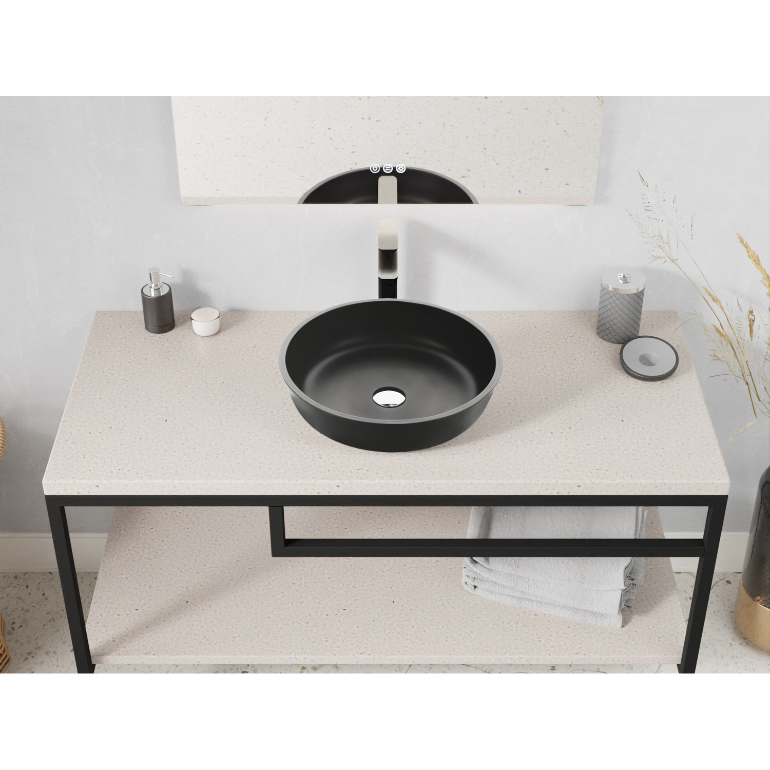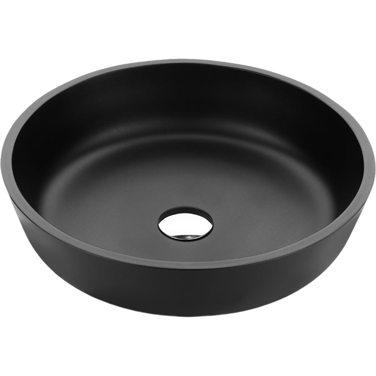 Slim, streamlined and sophisticated, our Allegro sink gives your bathroom the allure of a modern art installation without sacrificing functionality. The premium glass basin is finished in a bold Matte Black that’s both on-trend and timeless. The vessel design mounts to the top of your vanity or countertop (instead of into it) for a chic and unique look that frees up space in the cabinet below. The compact style makes it perfect for smaller powder rooms. Includes a chrome pop-up drain.SMART, SOPHISTICATED DESIGN — the sublime artistic styling stands out in all the right ways, while saving space in your bathroom or powder roomSTURDY ONE-PIECE CONSTRUCTION — built from premium glass, so you can be confident your Allegro sink will stand the test of timeBOLD MATTE BLACK FINISH— stays gorgeous year after yearNANO-WATER COATED — Protective water guard coating fights against soap and water stainsCOMES COMPLETE WITH CHROME POP-UP DRAIN — your sink is ready to install right out of the boxINNER DIMENSIONS — 15.55 in. Diam. x 3.83 in. HOUTER DIMENSIONS — 16.5 in. Diam. x 4.3 in. HBOTTOM WIDTH — 14.7 in.INCLUDES EVERYTHING YOU NEED — package includes drain assembly and mounting hardwareLIMITED LIFETIME WARRANTY — when you buy it, we back it, so you can be confident in the quality of our productsGET IT FAST — ships from warehouse within 24 hours of order processingCURBSIDE DELIVERY — buying an ANZZI product is always easy and convenientProfessional installation highly recommended