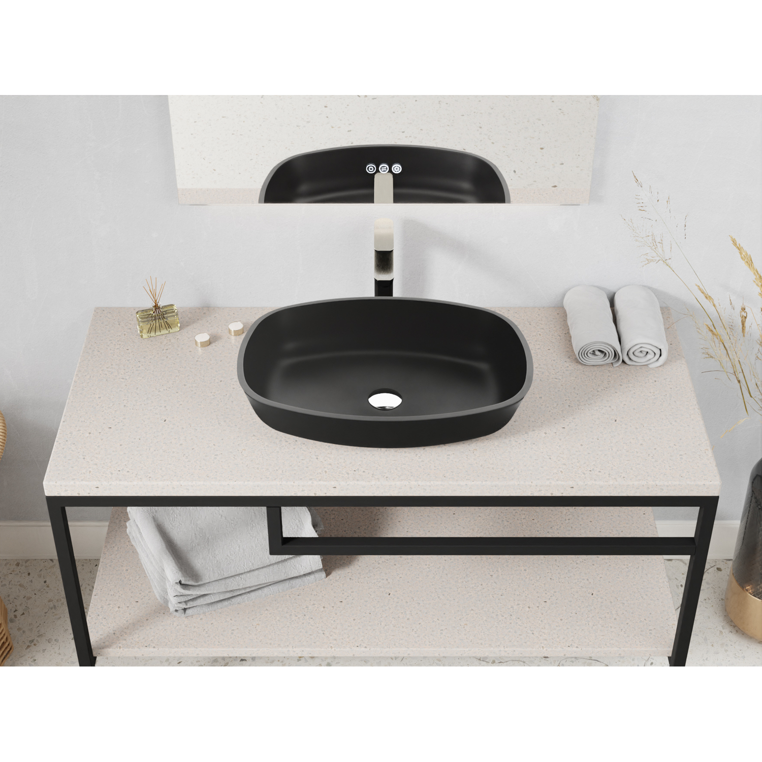 Crisp clean lines work together with soft gentle curves and a pleasing Matte Black finish to create an artistic vibe that’s both energetic and easy-going. The Ariadne mounts to the top of your vanity (instead of into it) to create a look that’s chic and unique, while freeing up space in the cabinet below and on the countertop. We’ve included a chrome pop-up drain so it’s ready to install.SMART, SOPHISTICATED DESIGN — the sublime artistic styling stands out in all the right ways, while saving space in your bathroom or powder roomSTURDY ONE-PIECE CONSTRUCTION — built from premium glass, so you can be confident your Ariadne sink will stand the test of timeBOLD MATTE BLACK FINISH — looks gorgeous year after yearNANO-WATER COATED — Protective water guard coating fights against soap and water stainsCOMES COMPLETE WITH CHROME POP-UP DRAIN — your sink is ready to install right out of the boxINNER DIMENSIONS — 20.35 in. W x 15.15 in. D x 4.23 in. HOUTER DIMENSIONS — 21.3 in. W x 16.1 in. D x 4.7 in. HBOTTOM WIDTH — 12.99 in.INCLUDES EVERYTHING YOU NEED — package includes drain assembly and mounting hardwareLIMITED LIFETIME WARRANTY — when you buy it, we back it, so you can be confident in the quality of our productsGET IT FAST — ships from warehouse within 24 hours of order processingCURBSIDE DELIVERY — buying an ANZZI product is always easy and convenientProfessional installation highly recommended