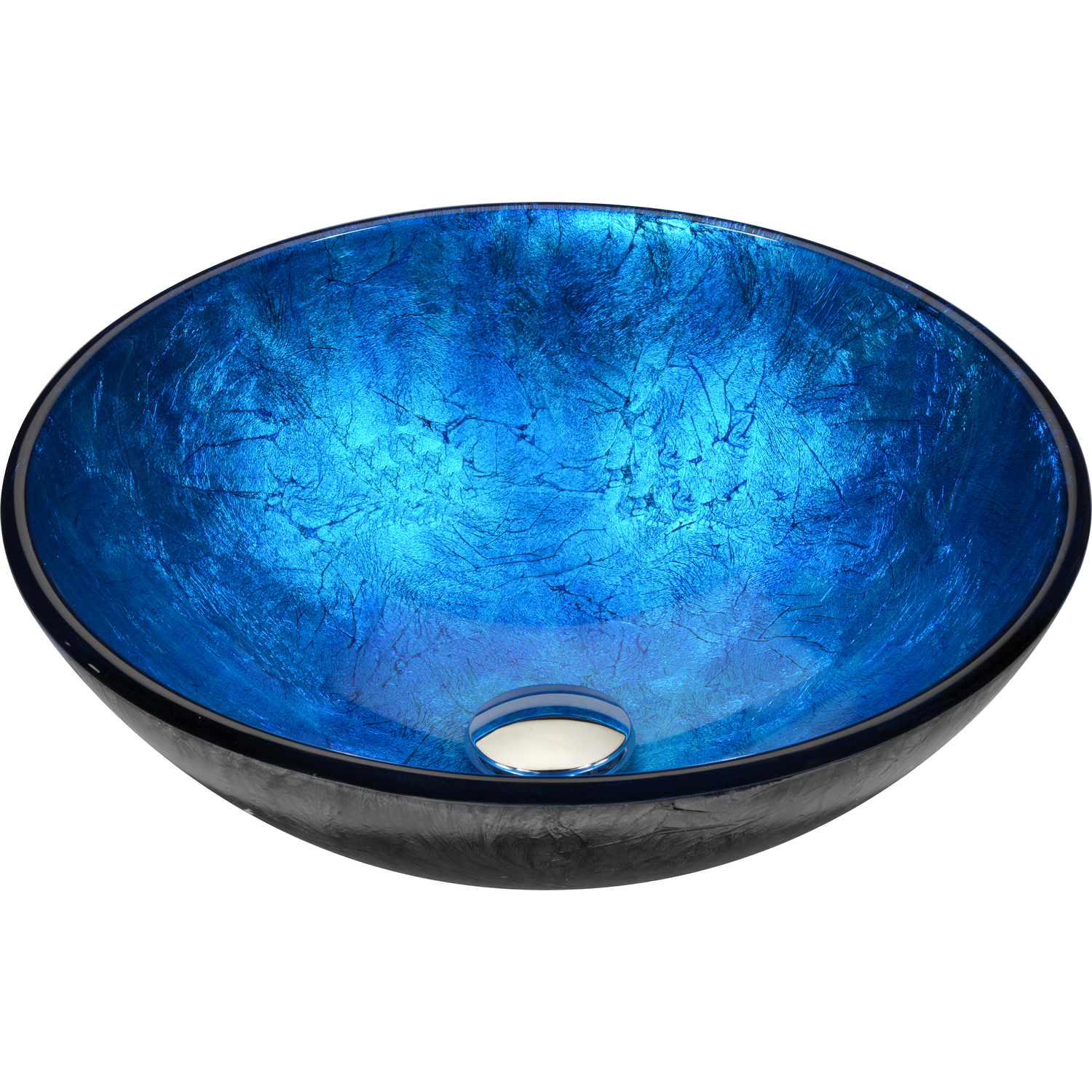 The ANZZI Jonas Series sink is a traditionally crafted round vessel sink adorned in a Frosted Blue finish. Each ANZZI vessel sink is formed using RHINO ALLOY certified high tempered Deco-Glass material. The result is an elegantly shaped and captivating vessel centerpiece for any bathroom counter.RHINO ALLOY certified tempered deco-glass construction in a stunning Frosted Blue finishScratch-tough and stain-resistant non-porous surfaceEasy-to-clean low maintenanceTop mount installationDimensions: 16.5 in. L x 16.5 in. W x 5.7 in. HDeco-glass thickness: 1/2 in.Single 1.75 in. standard drain openingANZZI Polished Chrome pop-up drain includedShips from factory within 24 hours once order is processedLimited Lifetime WarrantyTo speak to a knowledgeable and dedicated ANZZI specialist simply call 1-844-44-ANZZI or visit us on the web at www.ANZZI.com