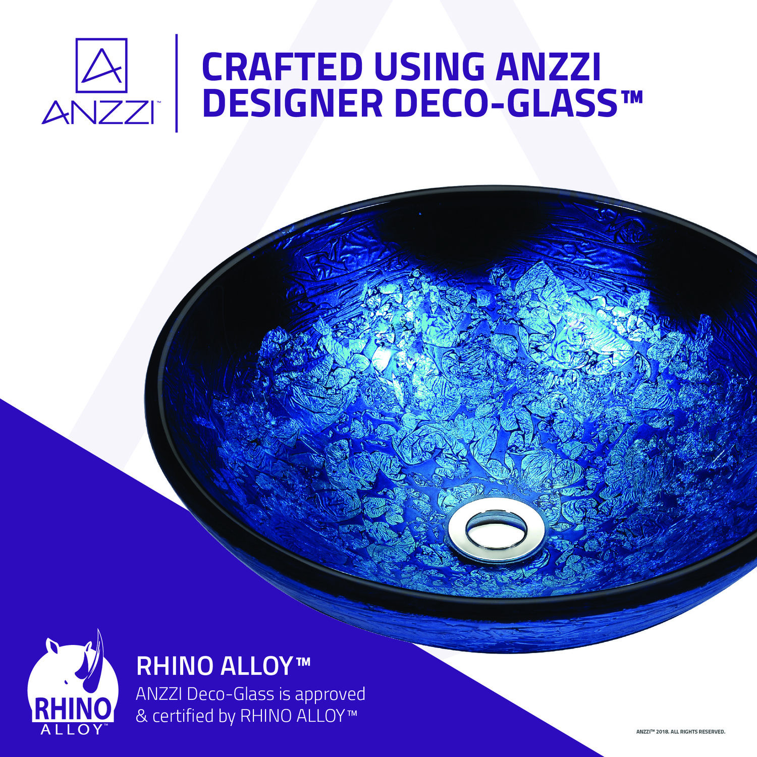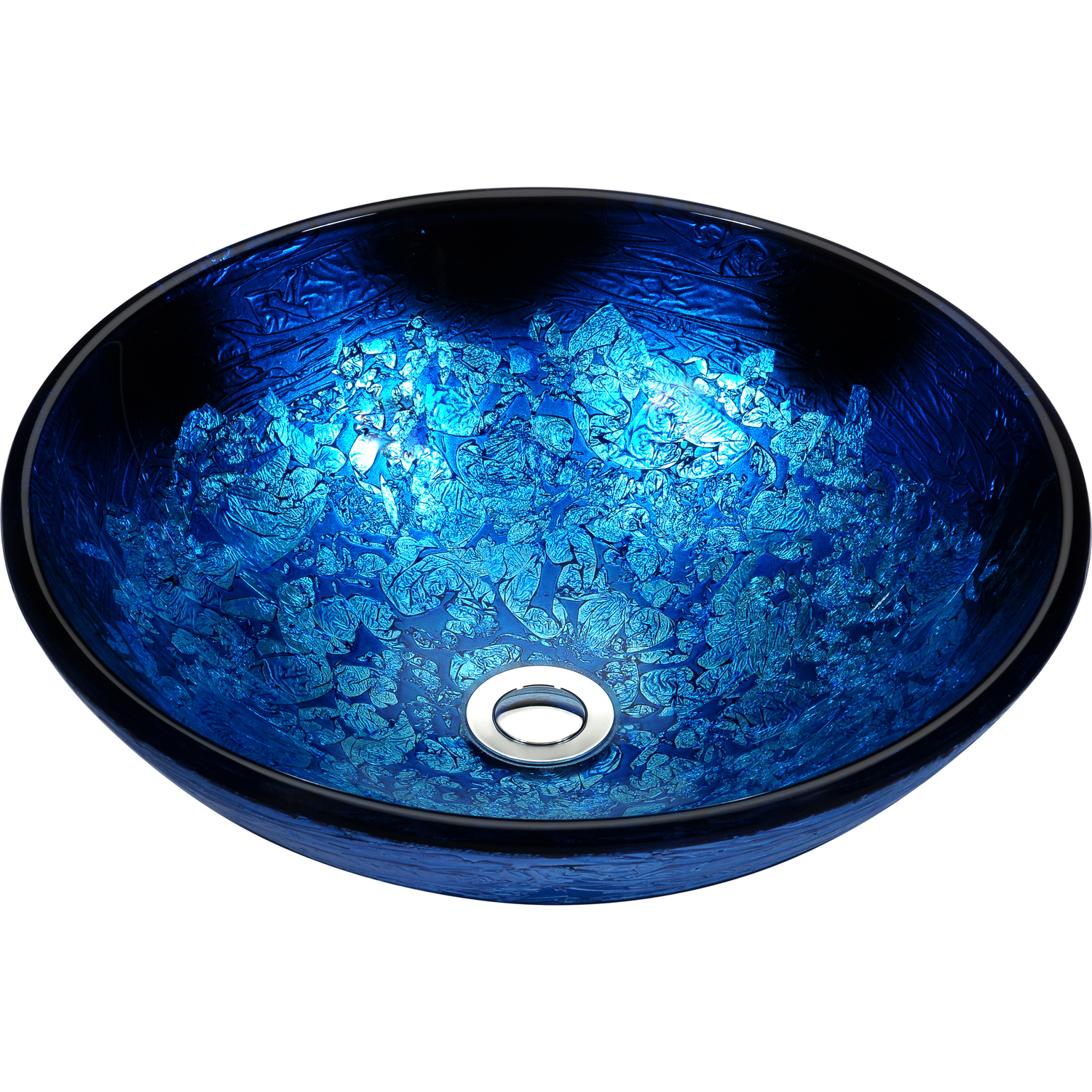 The ANZZI Tara Series sink is a traditionally crafted round vessel sink adorned in a Blue Blaze finish. Each ANZZI vessel sink is formed using RHINO ALLOY certified high tempered Deco-Glass material. The result is an elegantly shaped and captivating vessel centerpiece for any bathroom counter.RHINO ALLOY certified tempered deco-glass constructionScratch-tough and stain-resistant non-porous surfaceEasy-to-clean low maintenanceTop mount installationDimensions: 16.5 in. L x 16.5 in. W x 5.7 in. HDeco-glass thickness: 1/2 in.Single 1.75 in. standard drain openingANZZI Polished Chrome pop-up drain includedShips from factory within 24 hours once order is processedLimited Lifetime WarrantyTo speak to a knowledgeable and dedicated ANZZI specialist simply call 1-844-44-ANZZI or visit us on the web at www.ANZZI.com
