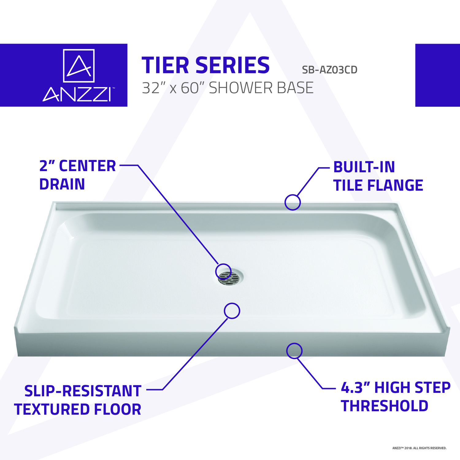 Anzzi Tier 32 x 60 in. Center Drain Single Threshold Shower Base in White, 191042000728, SB-AZ03CD