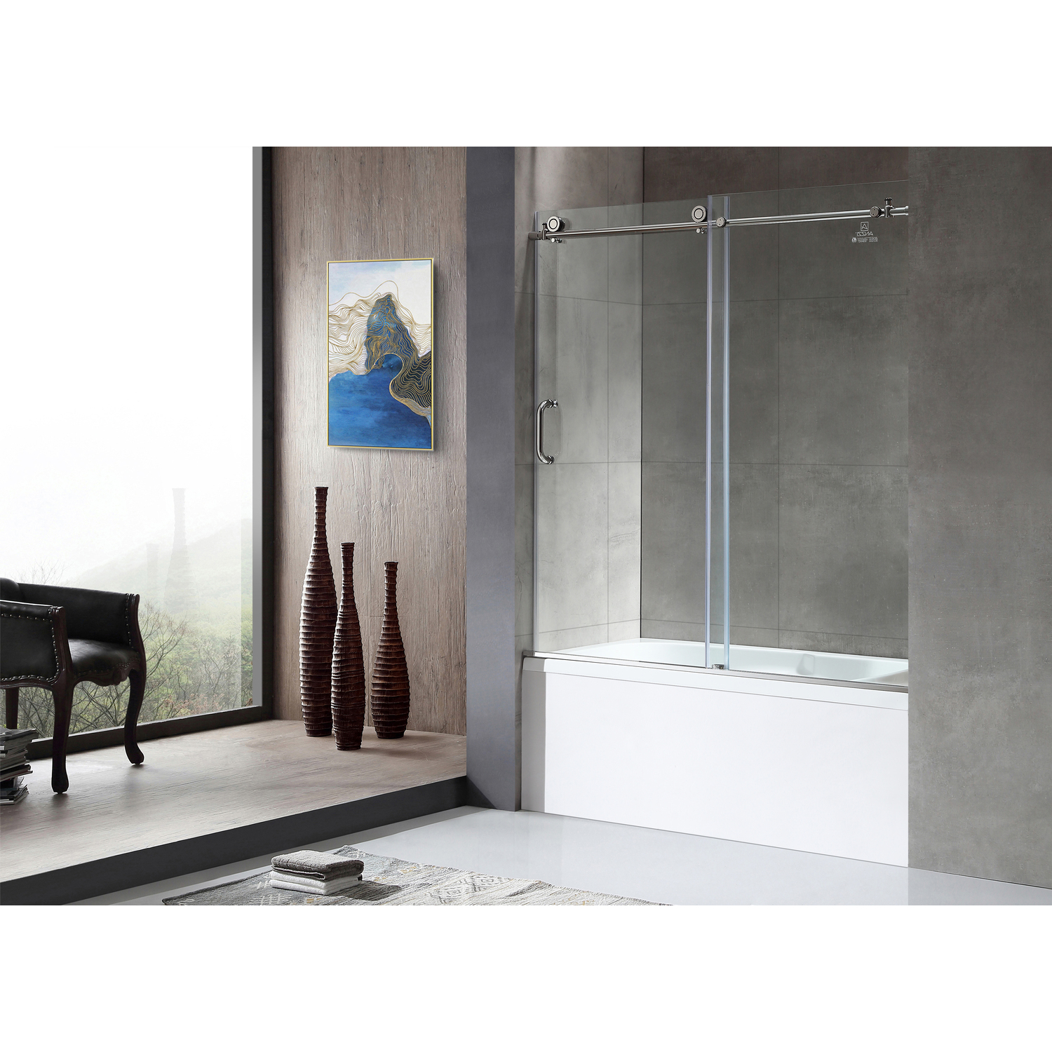 Anzzi 5 ft. Acrylic Left Drain Rectangle Tub in White With 60 in. x 62 in. Frameless Sliding Tub Door in Polished Chrome, 191042059771, SD1701CH-3060L