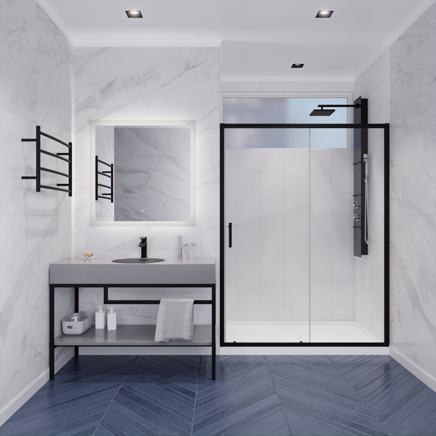 - ALSO AVAILABLE FOR PURCHASE (Search #) : Vanity (CS-FGC002-MB), Bath Sink Faucet (L-AZ037MB), LED Mirror (BA-LMDFX004AL), Shower Panel (SP-AZ018), Towel Warmer (TW-AZ018MBK)
