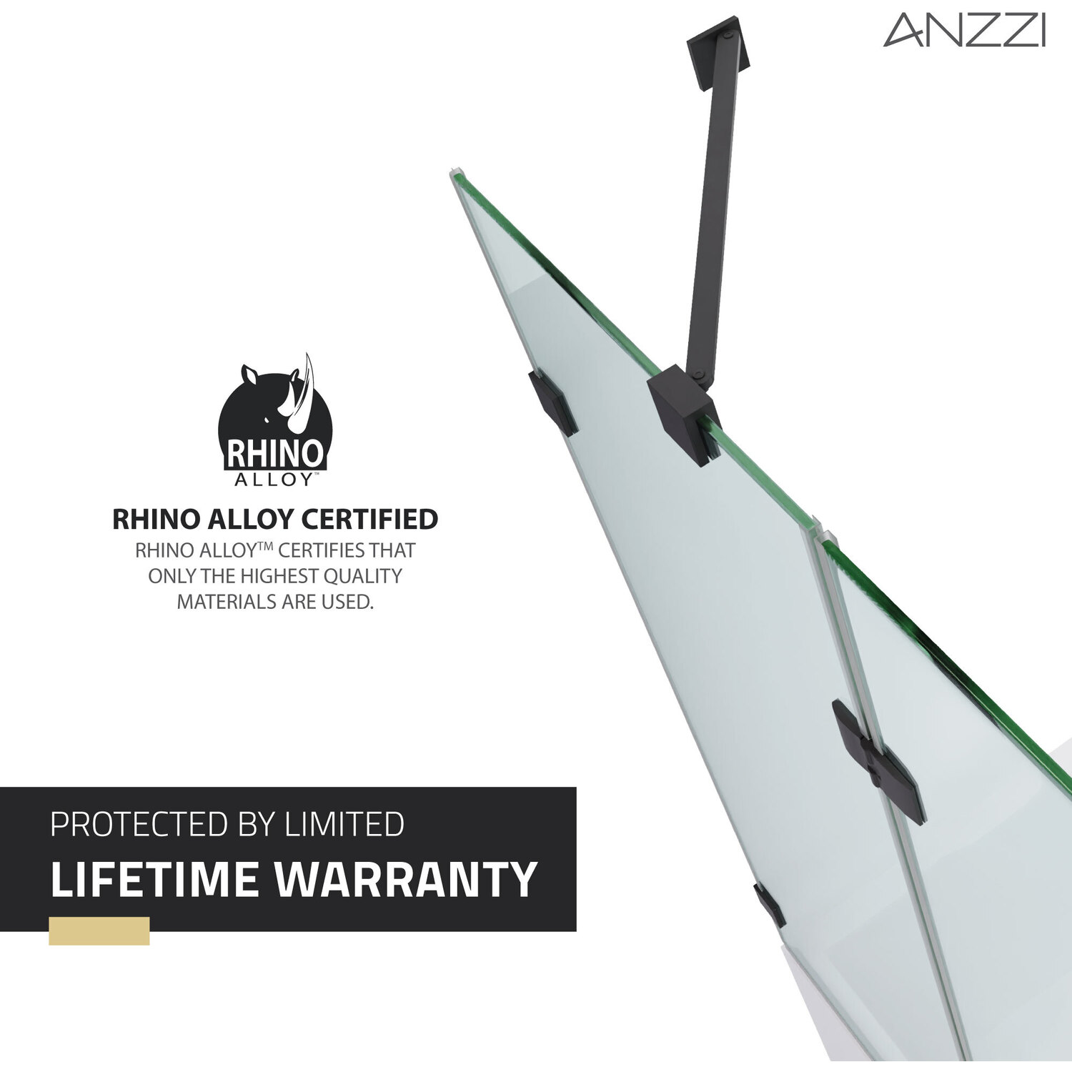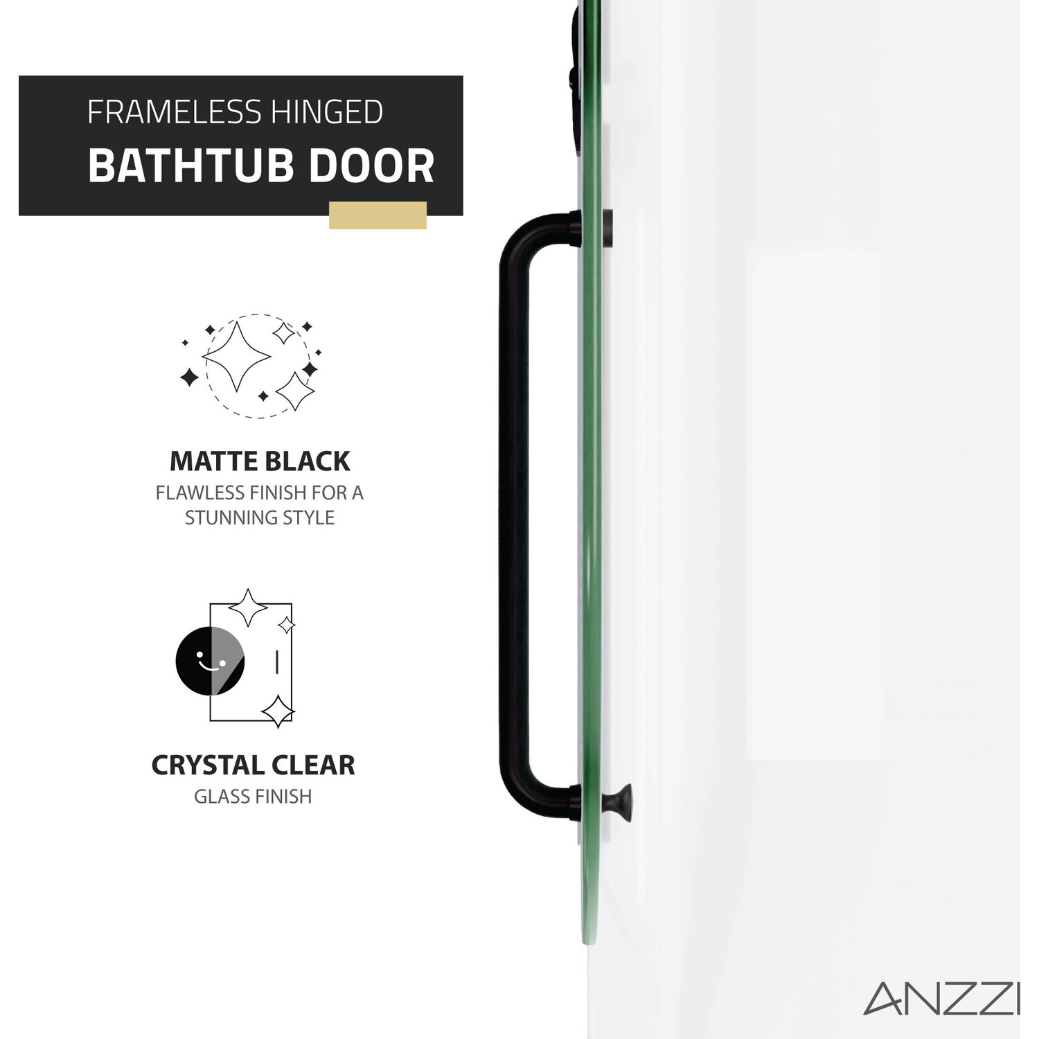 ANZZI continues its tradition of innovative home design with the Herald Series tub glass door. The ANZZI Herald Series features a modern marriage of tempered, crystal clear, DECO-GLASS panels with stainless steel RHINO ALLOY approved hardware finish in beautiful Matte Black. ANZZI's own TSUNAMI GUARD shielding repels water and prevents fogging and moisture build up. With effortlessly wide opening functionality and cutting edge modern style ANZZI has what you need to build your dream shower.
