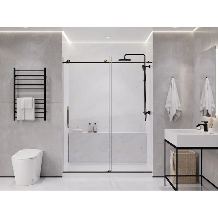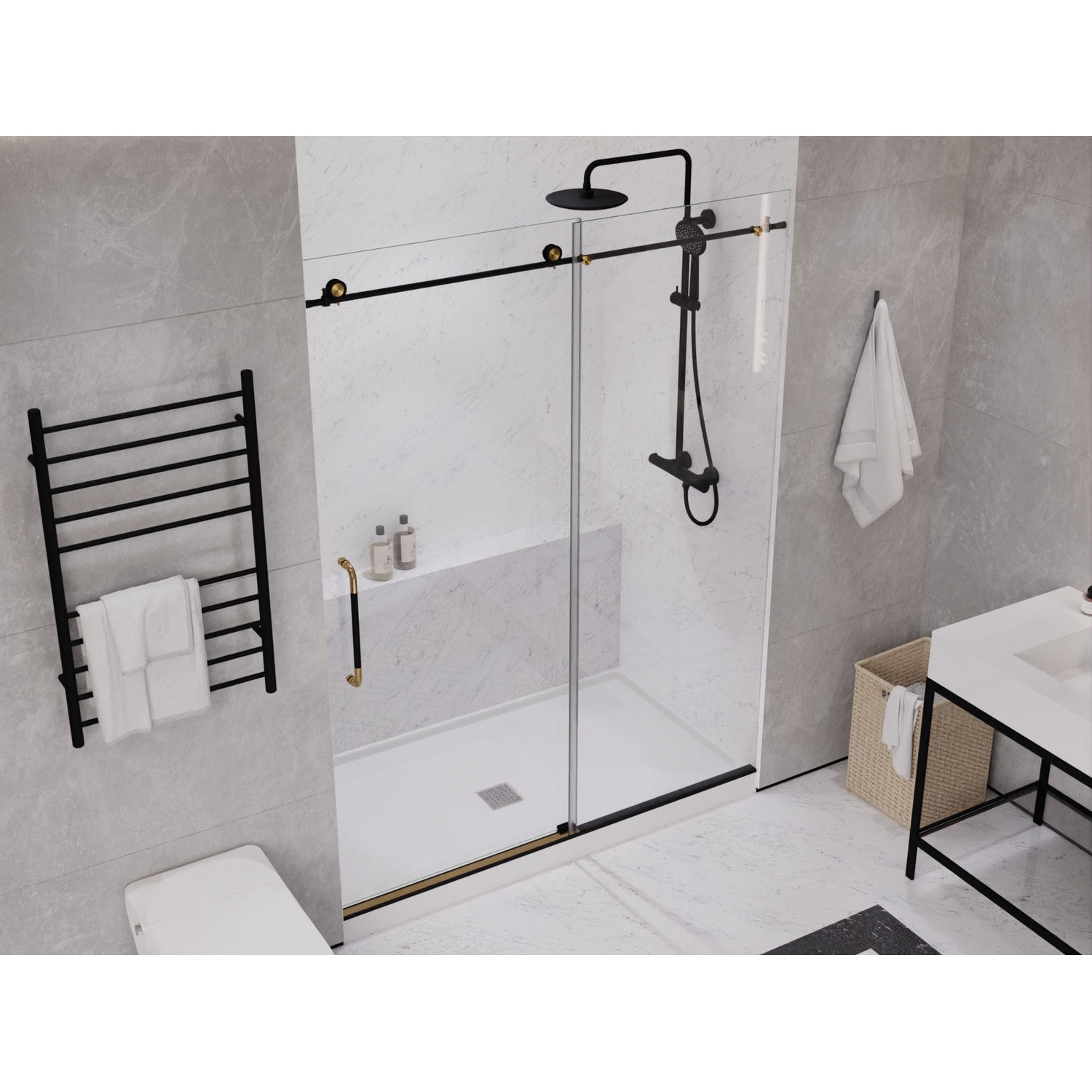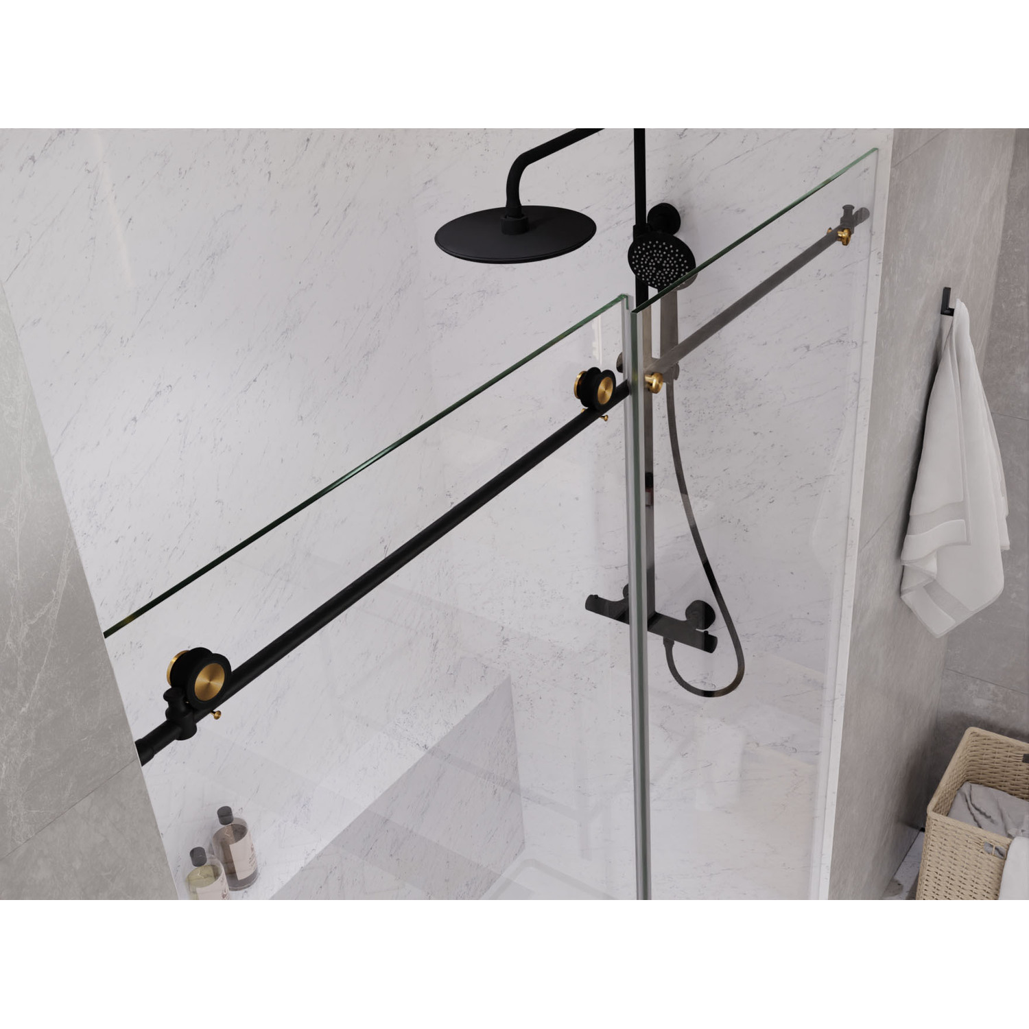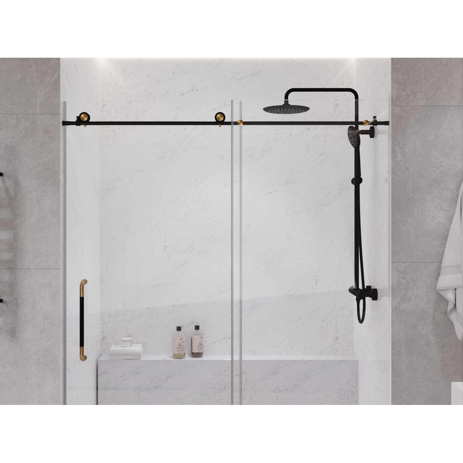 Anzzi Madam Series 76-in. x 60-in. Frameless Sliding Shower Door in Matte Black and Brushed Gold, 191042075108, SD-AZ13-02MBBG