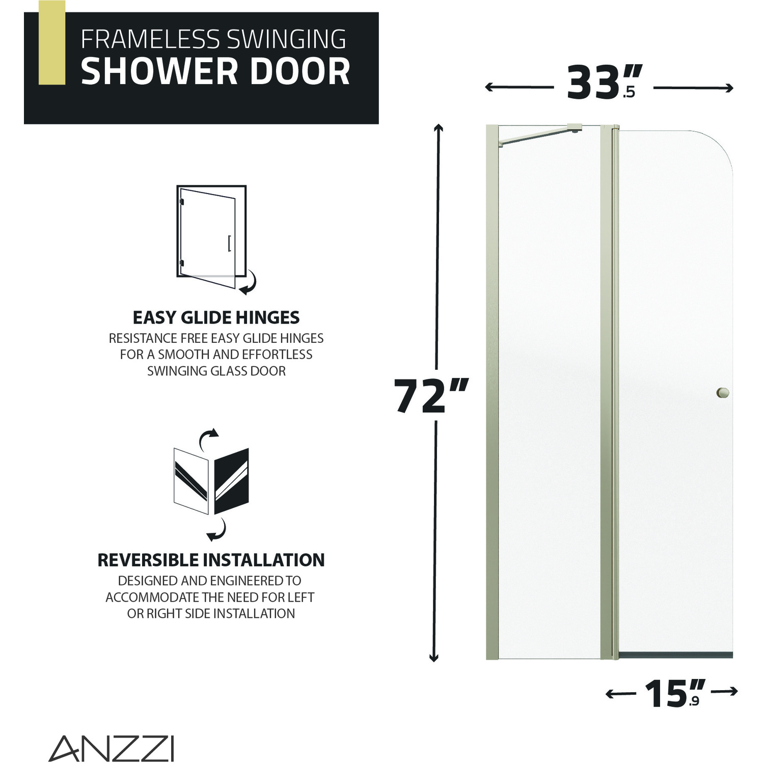 ANZZI Romance 72-in. x 33.5-in. Frameless Swinging Shower Door in Brushed Nickel, 191042074095, SD-AZ14-01BN