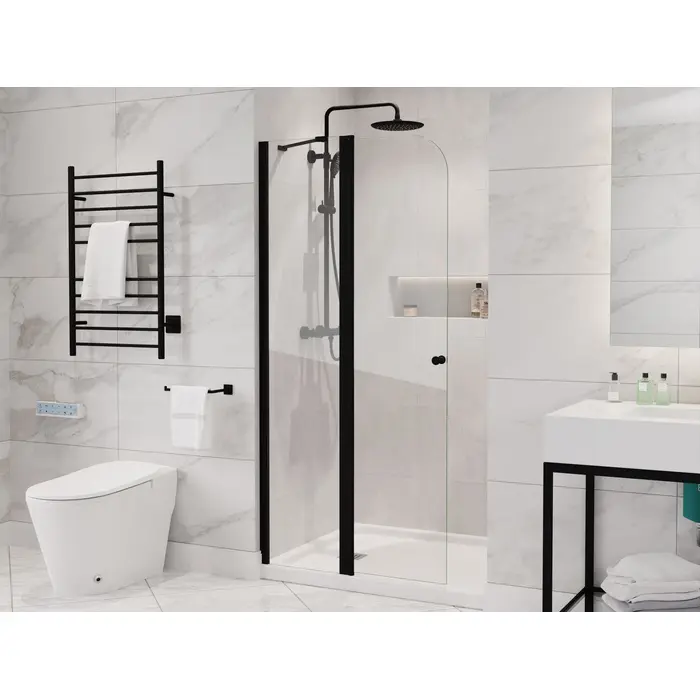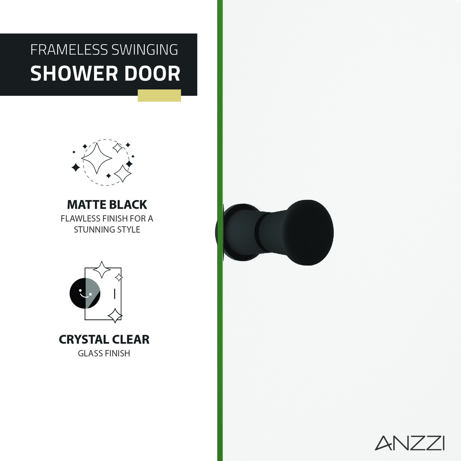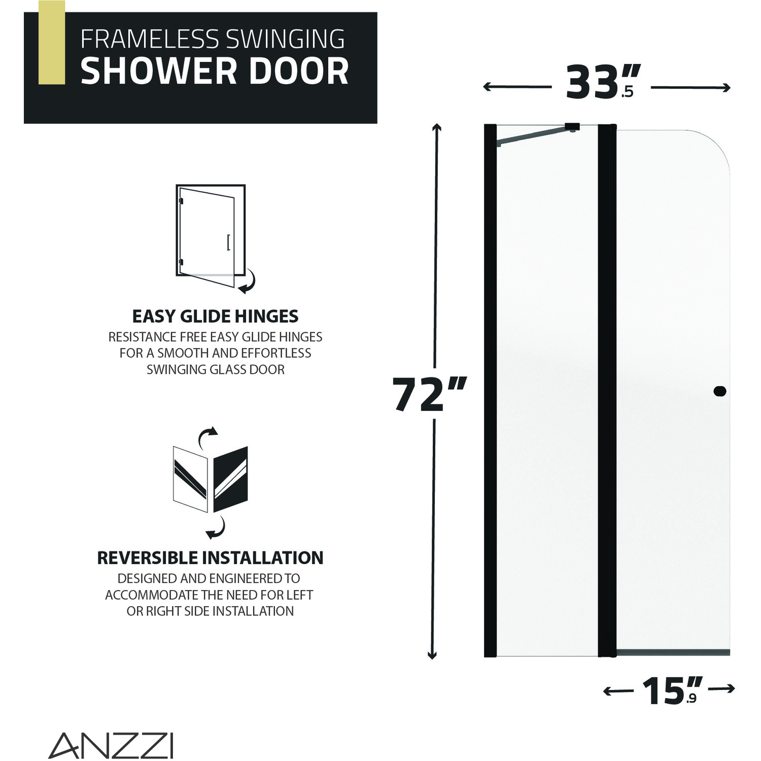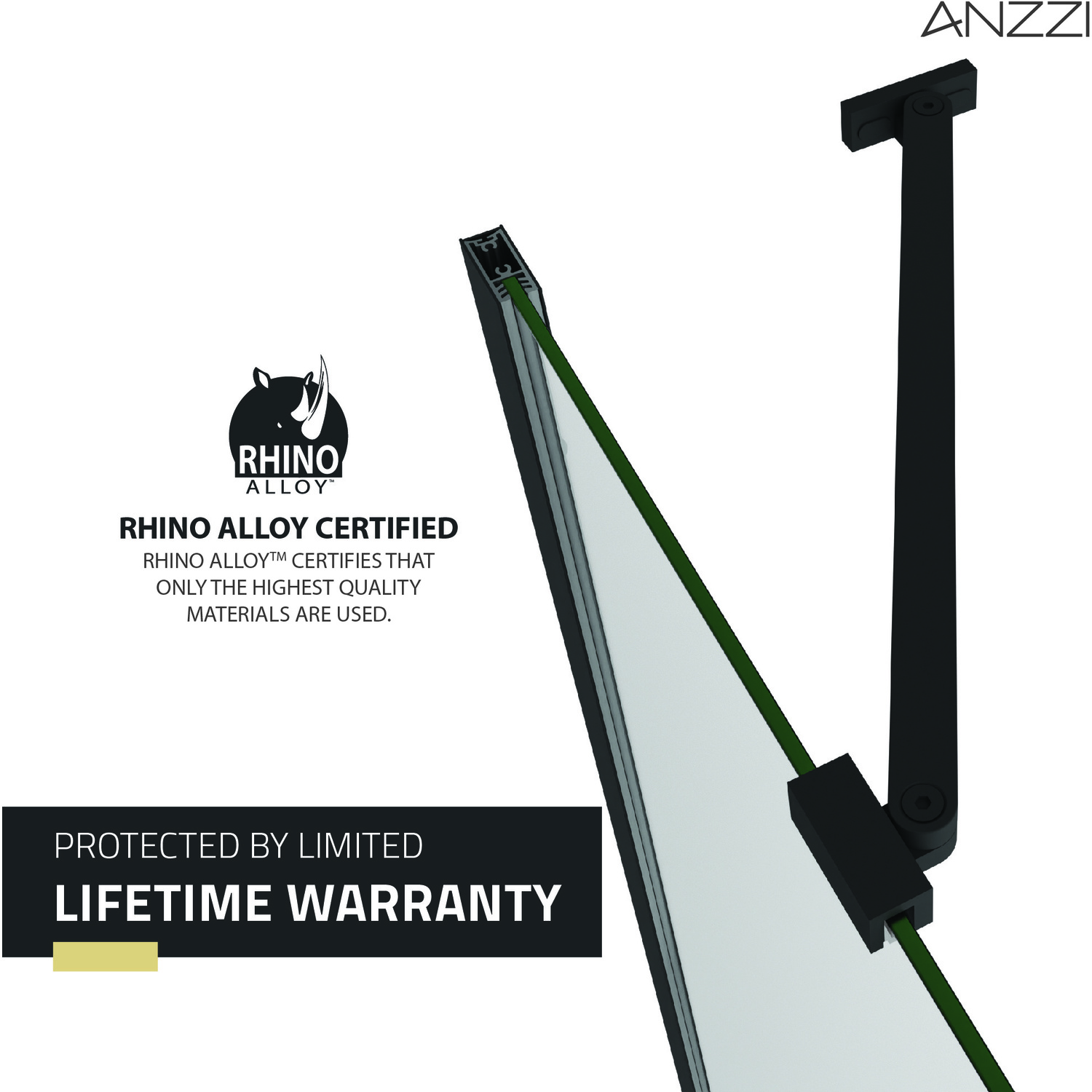 Like what you see? You can make this bathroom suite a reality with ANZZIALSO AVAILABLE FOR PURCHASE (Search #) : LED Mirror (BA-LMDFX006AL), Console Sink (CS-FGC001-NB), Sink Faucet (L-AZ012MB), Shower Head (SH-AZ101MB), Smart Bidet (TL-STFF950WH), Water Heater (WH-AZ035-M1), Towel Warmer (TW-WM104MB)SAFE, STRONG, DURABLE —tempered glass panels are ANSI-certifiedGLASS STAYS CRYSTAL CLEAR — Tsunami Guard shielding repels water to prevent cloudy build-upEASY GLIDE DOOR PIVOT — resistance-free for smooth and effortless opening/closingVERSATILE REVERSIBLE DESIGN — engineered for both right and left installation…whatever fits your space!RHINO ALLOY CERTIFIED — we use only the highest quality materials, guaranteed!FLAWLESS MATTE BLACK FINISH — hardware keeps its gorgeous good looks year after yearDIMENSIONS — fixed panel: 72-in. H x 17.6-in. W, door: 72-in. H x 15.9-in. W, overall: 72-in. H x 33.5-in. WINCLUDES EVERYTHING YOU NEED — package includes screws, wall anchors, water sealing strip, pivot seat lubeLIMITED LIFETIME WARRANTY — when you buy it, we back it, so you can be confident in the quality of our productsGET IT FAST — ships from warehouse within 24 hours of order processingCURBSIDE DELIVERY — buying an ANZZI product is always easy and convenientProfessional installation highly recommended