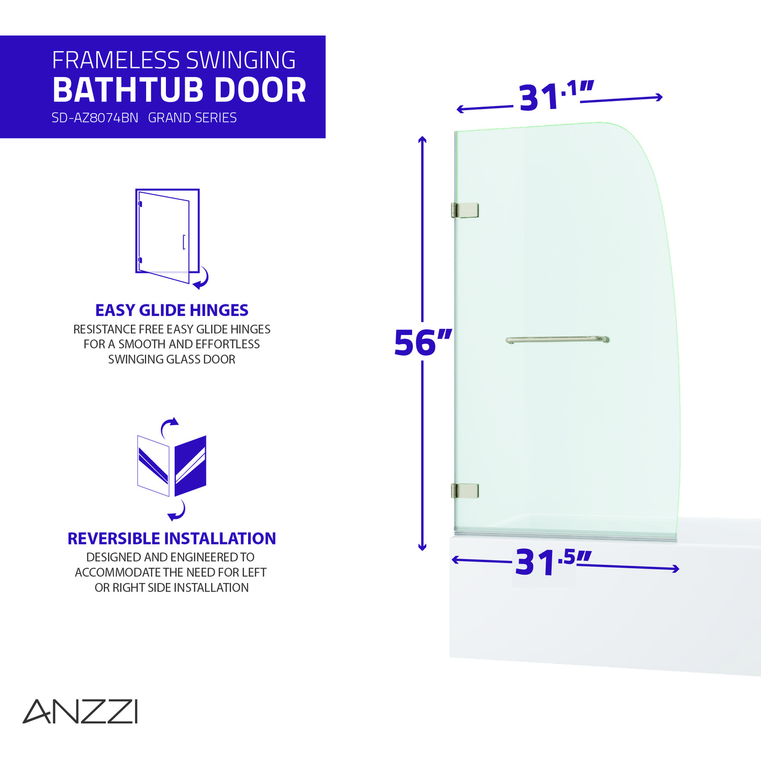 ANZZI Series 34 in. by 56 in. Frameless Hinged Tub Door in Brushed Nickel, 191042070912, SD-AZ8074-01BNR