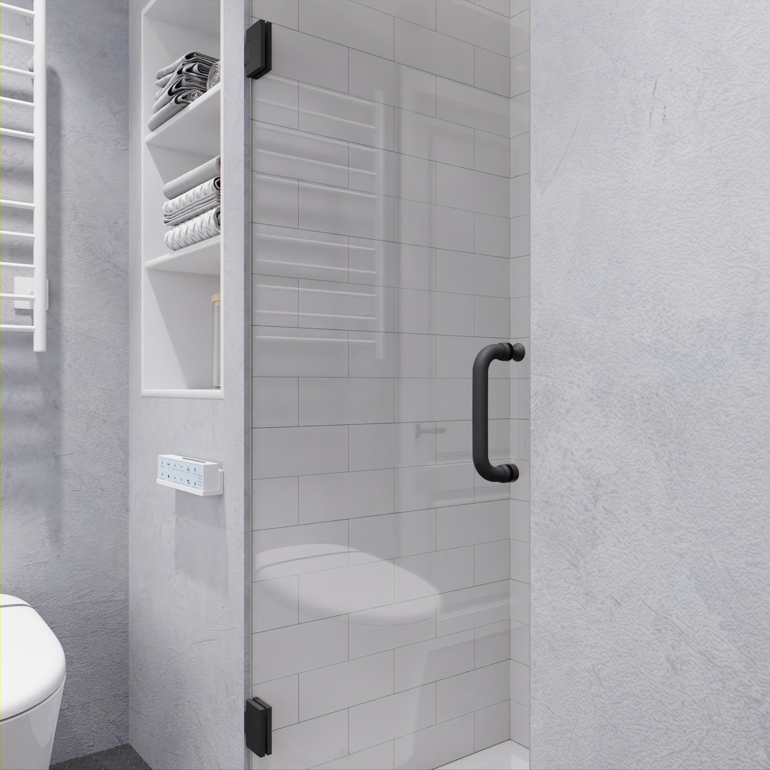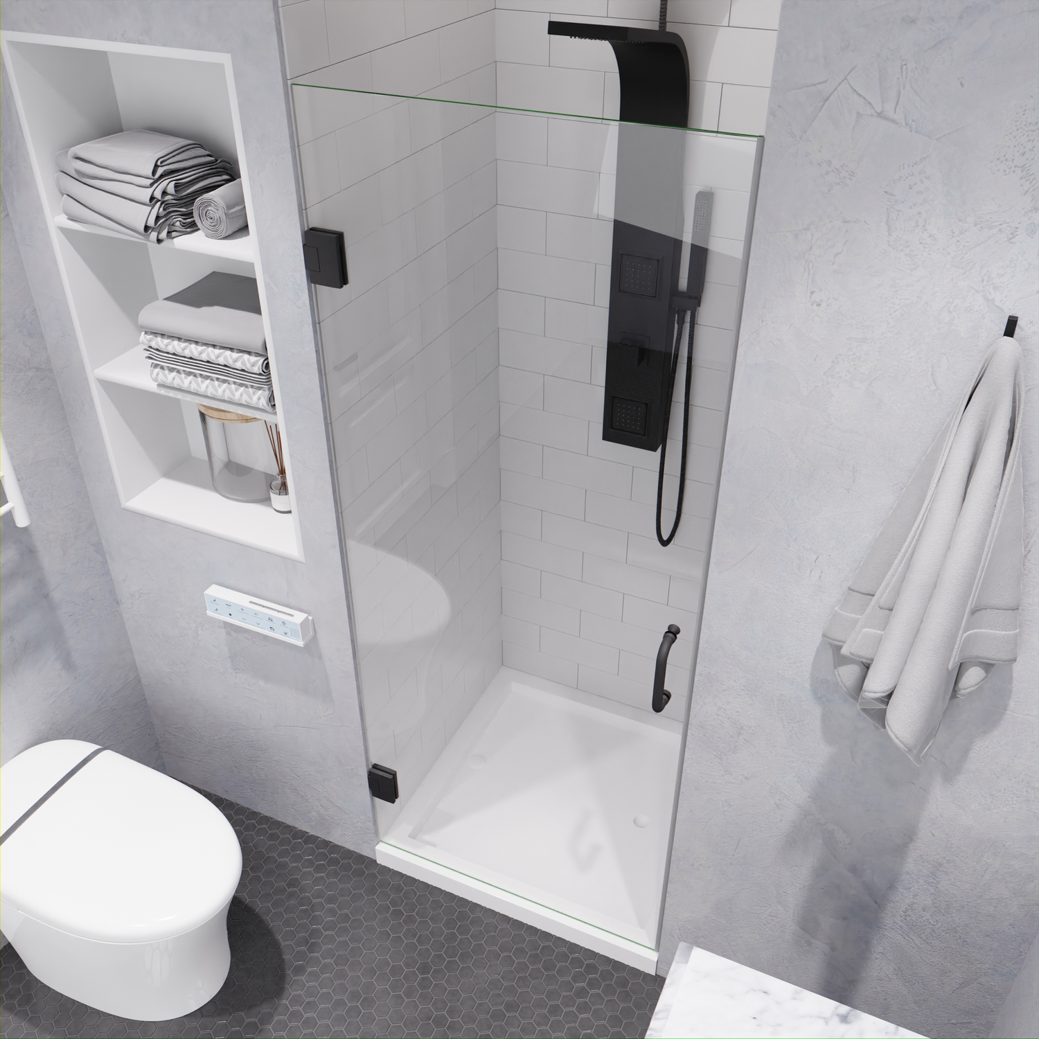Like what you see? You can make this bathroom suite a reality with ANZZIALSO AVAILABLE FOR PURCHASE (Search #) : Vanity (VT-MRCT0036-WH), Lav Faucet (L-AZ018), Shower Panel (SP-AZ078MB), Toilet (TL-STSF851W), Towel Warmer (TW-WM105WH)ANSI Certified 3/8 in. clear tempered Deco-Glass with TSUNAMI GUARD shieldingFrameless swinging design for minimalist styled nuanceSingle sided TSUNAMI GUARD repels water and moisture for pristine crystal clear glassOverall dimensions: 30 in. W x 72 H in.Walk in opening: 30 in.RHINO ALLOY certified Stainless Steel high forged hinge hardware with 90 degree actionStunning and vibrant Gunmetal hardware finish and pristine clear glassRHINO ALLOY certified Stainless Steel door handle in GunmetalPackage includes: 2x high forged hinge, 1x stainless steel door handle, 1x tempered DECO-GLASS doorClever symmetrical design allows for reversible left or right installationProfessional installation highly recommendedShips from warehouse within 24 hours of order processing