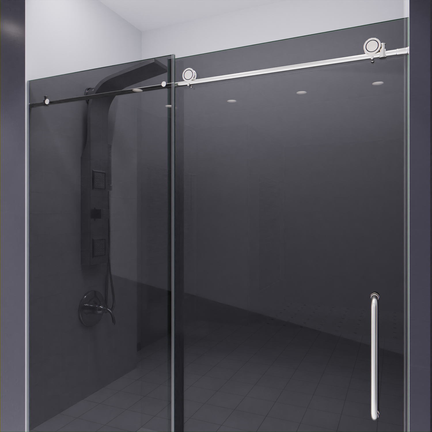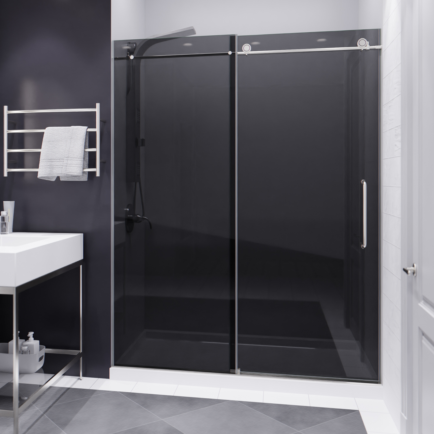 Anzzi Leon Series 60 in. by 76 in. Frameless Sliding Shower Door in Brushed Nickel with Tinted Glass, 191042062313, SD-AZ8077-02BNT