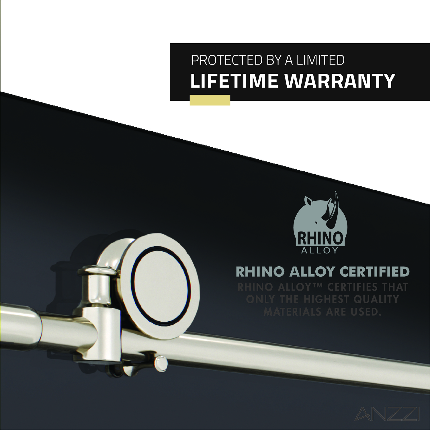 ANZZI continues its tradition of innovative home design with the Leon Series shower glass door. The ANZZI Leon Series features a modern marriage of tempered, tinted black, DECO-GLASS panels with stainless steel RHINO ALLOY approved hardware finish in beautiful brushed nickel. ANZZI's own TSUNAMI GUARD shielding repels water and prevents fogging and moisture build up. With seamless fluid sliding functionality and cutting edge modern style ANZZI has what you need to build your dream shower.