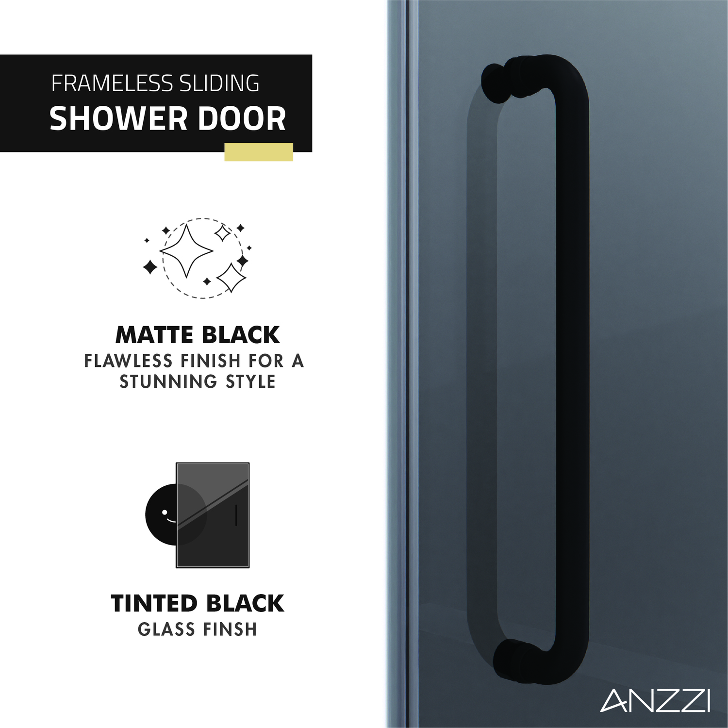 ANZZI continues its tradition of innovative home design with the Leon Series shower glass door. The ANZZI Leon Series features a modern marriage of tempered, tinted black, DECO-GLASS panels with stainless steel RHINO ALLOY approved hardware finish in beautiful Matte Black. ANZZI's own TSUNAMI GUARD shielding repels water and prevents fogging and moisture build up. With seamless fluid sliding functionality and cutting edge modern style ANZZI has what you need to build your dream shower.