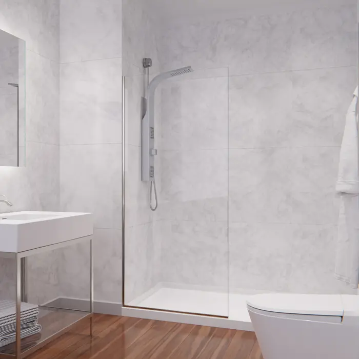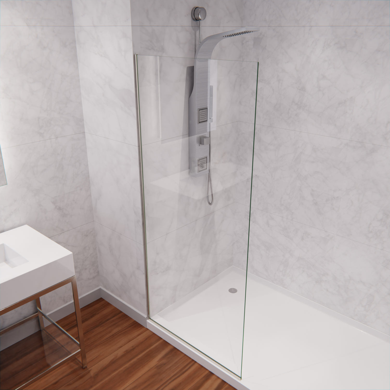 This stylish alternative to sliding or swinging doors adds a premium accent to your shower space while shielding your bathroom floor from spray and splashing. The ANSI-certified, tempered Deco-Glass is strong, durable and protected by ANZZI's own water-repelling Tsunami Guard coating that prevents build-up of mineral and water stains. The Rhino Alloy-certified Stainless-Steel frame finished in beautiful Brushed Nickel that never loses its luster. It’s the perfect upgrade for any bathroom!Like what you see? You can make this bathroom suite a reality with ANZZIALSO AVAILABLE FOR PURCHASE (Search #) : Vanity (CS-FGC001-BN), Lav Faucet (L-AZ012BN), Shower Panel (SP-AZ078BS), Toilet (TL-STFF950WH), LED Mirror (BA-LMDFXBT005WH), Towel Warmer (TW-WM104BN)CLEAR GLASS — timeless, stylish and easy to cleanBRUSHED NICKEL FINISH — stays beautiful and never loses its lusterSYMETRICAL DESIGN— adds versatility by allowing for left or right installation, whatever best fits your spaceDIMENSIONS — 74 in. H x 34 in. WINCLUDES EVERYTHING YOU NEED — package includes glass panel, frame components, mounting hardwareLIMITED LIFETIME WARRANTY — when you buy it, we back it, so you can be confident in the quality of our productsGET IT FAST — ships from warehouse within 24 hours of order processingCURBSIDE DELIVERY — buying an ANZZI product is always easy and convenientProfessional installation highly recommendedAlso available in Matte Black, model #SD-AZFL06001MB, Brushed Gold with Frosted Glass, model #SD-AZFL06001BG-F, Matte Black with Tinted Glass, model #SD-AZFL06001MB-TTo speak to a knowledgeable and dedicated ANZZI specialist simply call 1-844-44-ANZZI or visit us on the web at www.ANZZI.com